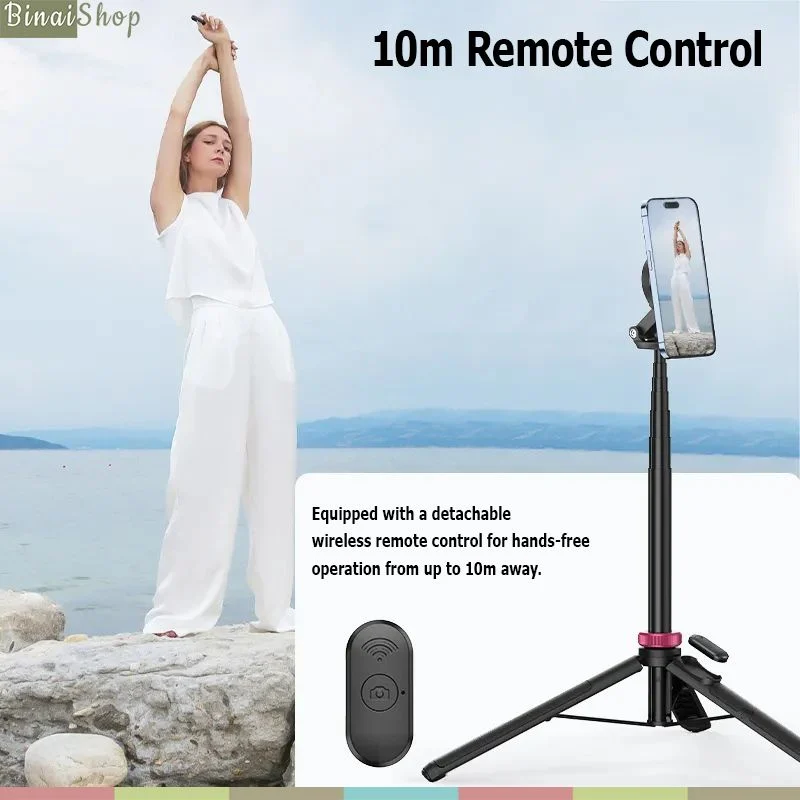 - Có thể điều chỉnh chiều dài theo 7 đoạn rút, với chiều dài tối đa 153cm, chiều dài gấp gọn 10cm.
