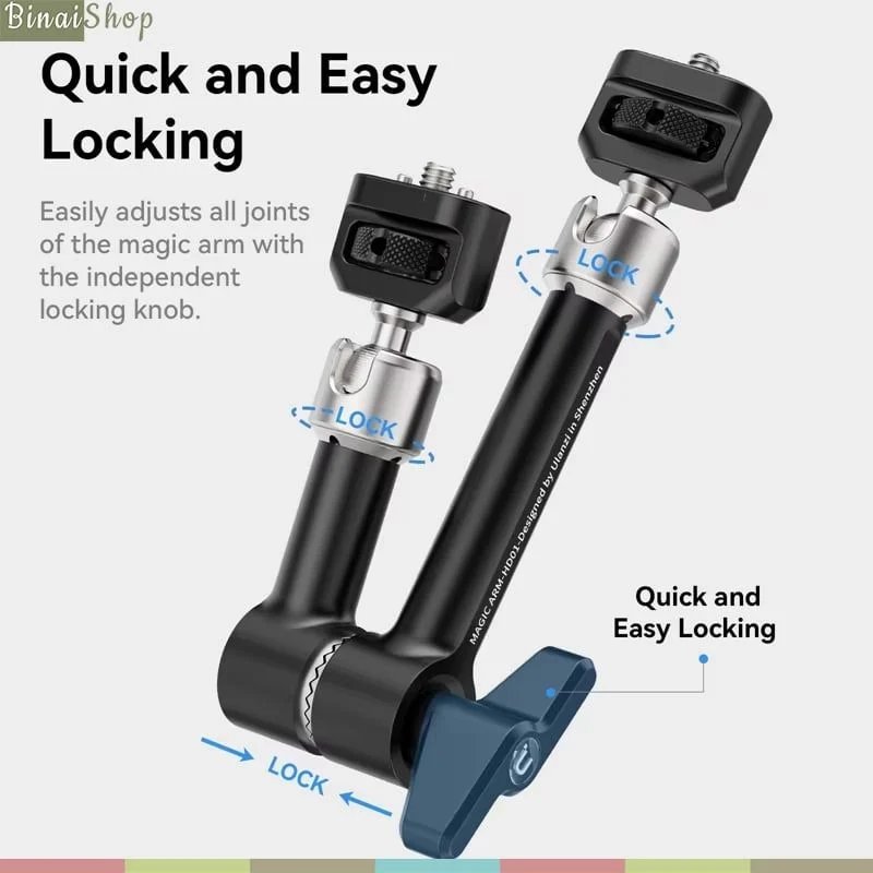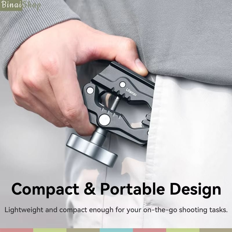 - Ulanzi R011A thiết kế nhỏ gọn, chắc chắn, độ bền cao, khả năng chịu tải lớn, hỗ trợ mở rộng 10 inch, ren 1/4 và xoay linh hoạt 360 độ, kẹp càng cua bám tốt