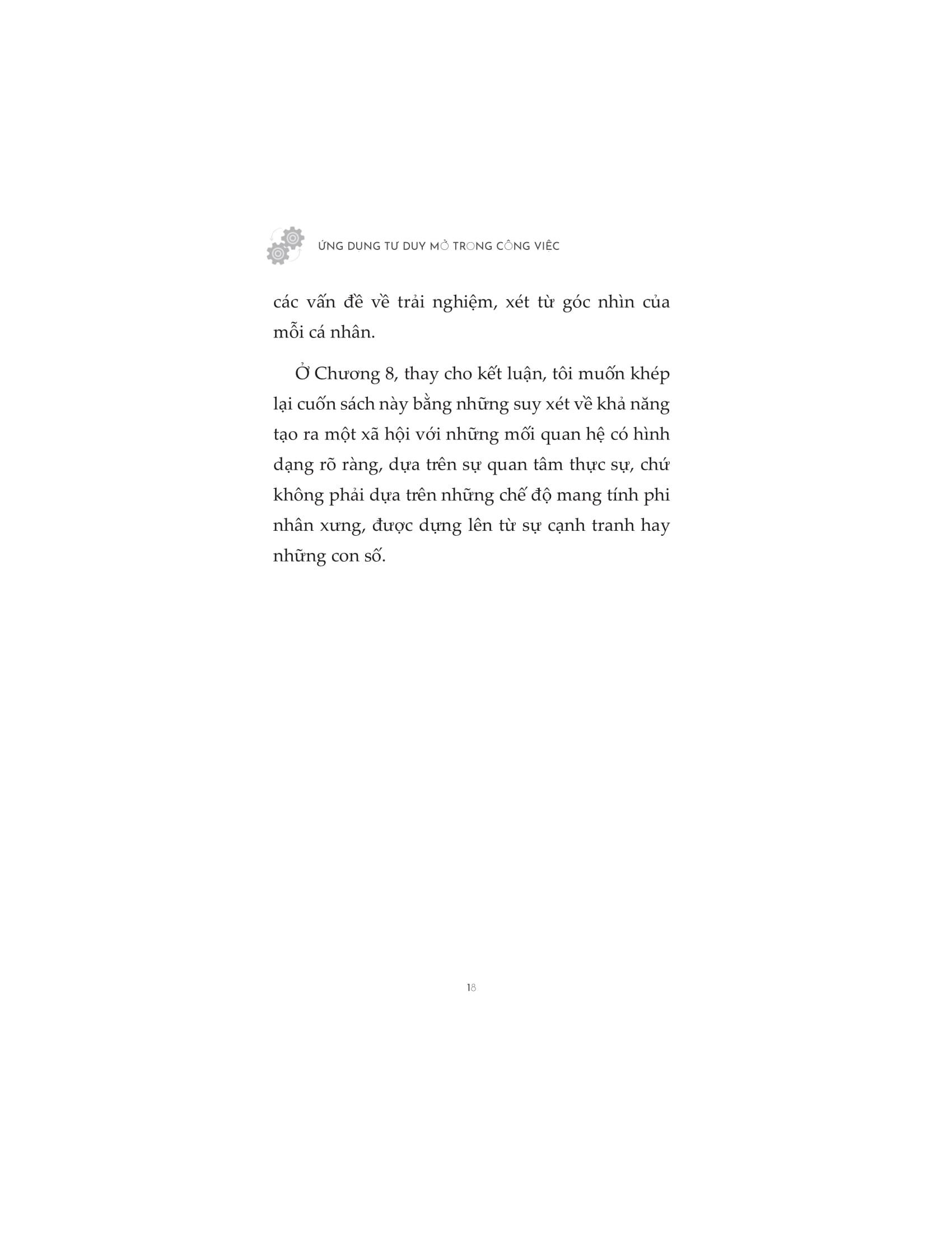 Ứng Dụng Tư Duy Mở Trong Công Việc Thế giới biến đổi không ngừng, lối tư duy mở đóng vai trò vô cùng quan trọng trong việc giúp con người thích nghi, học hỏi và phát triển đặc biệt là trong công việc, học tập. Vậy tư duy mở là gì? Làm thế nào để rèn luyện và phát triển tư duy mở? Cuốn sách “ỨNG DỤNG TƯ DUY MỞ TRONG CÔNG VIỆC” sẽ giải đáp hết những băn khoăn trên: Tư duy mở hay còn gọi là tư duy linh hoạt, là khả năng đón nhận, xem xét và chấp nhận các quan điểm, ý tưởng mới một cách cởi mở, không bị ràng buộc bởi các định kiến hay suy nghĩ cố hữu. Đây là một trong những kỹ năng quan trọng nhất của thế kỷ 21, giúp con người thích ứng với sự biến động không ngừng của thế giới. Trong thế giới hiện đại, tư duy mở là một tố chất cần thiết để thích nghi và phát triển công việc. Các doanh nghiệp, tổ chức có văn hóa mở thường phát triển nhanh hơn và sáng tạo hơn so với những nơi cố hữu, ì trệ về tư duy. Tư duy mở giúp chúng ta mở rộng tầm nhìn, tiếp thu kiến thức mới, sáng tạo đột phá và giải quyết vấn đề hiệu quả, qua đó đạt được thành công trong sự nghiệp và hạnh phúc trong cuộc sống. Tư duy mở mang lại nhiều lợi ích to lớn cho con người trong cả cuộc sống cá nhân và công việc. =>> Dưới đây là một số lợi ích tiêu biểu của ứng dụng tư duy mở :