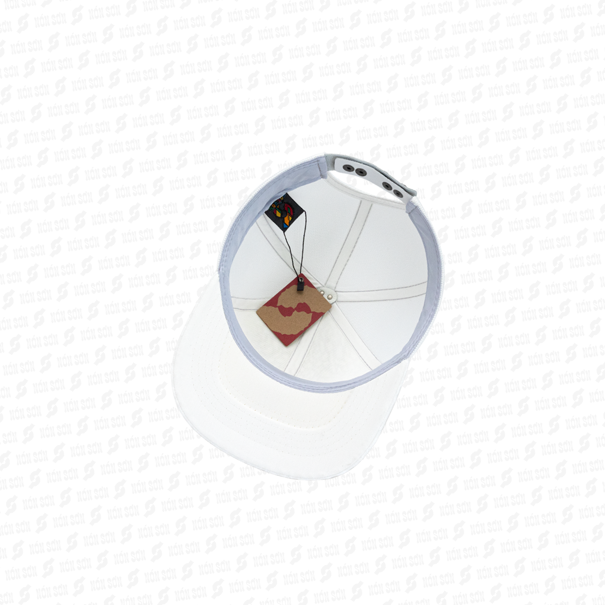 - Sử dụng kẹp phơi vào đai bên trong nón (vị trí giữa lưỡi trai), sao cho lưỡi nón hướng phía trên và dây đuôi hướng phía dưới.