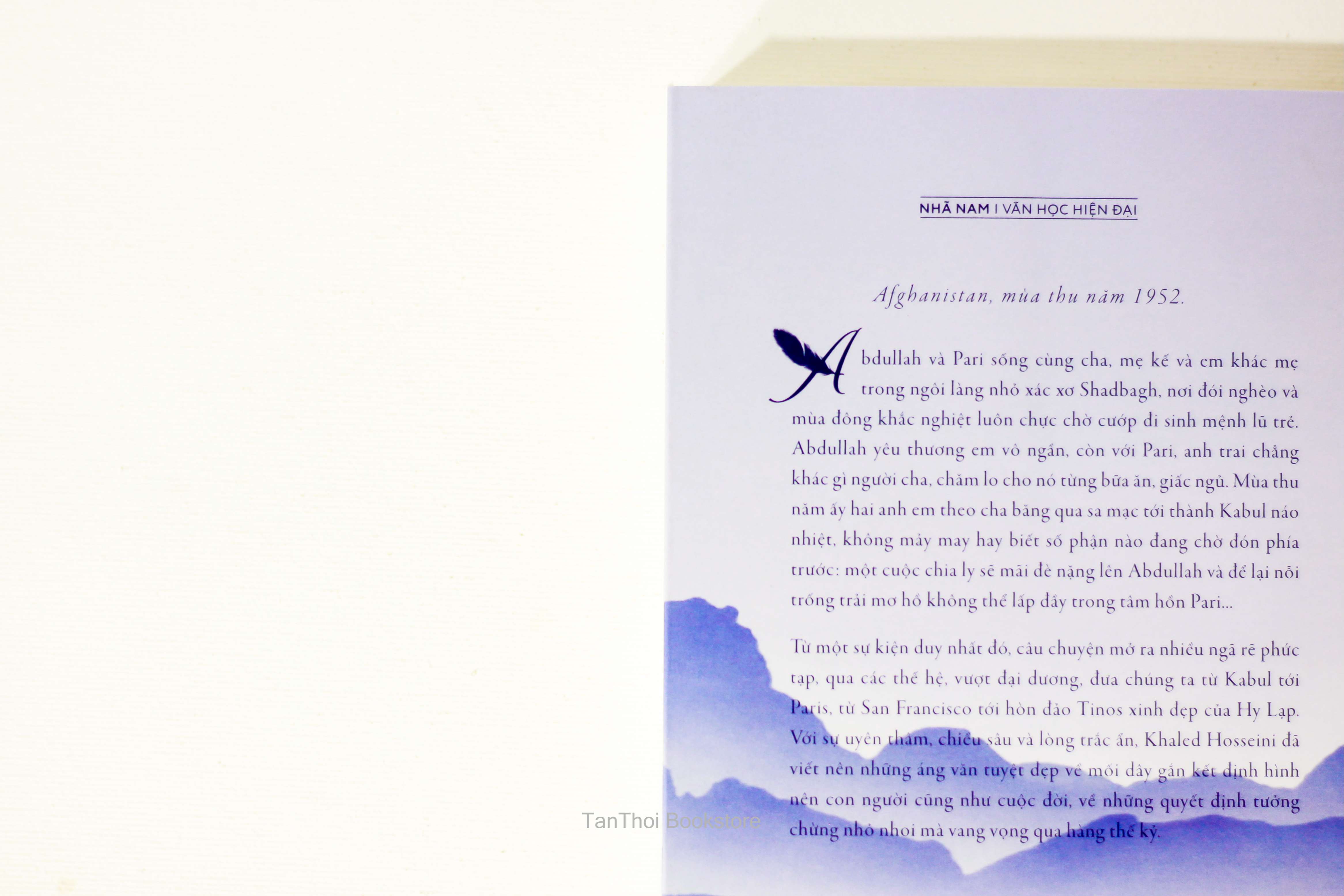 Từ một sự kiện duy nhất đó, câu chuyện mở ra nhiều ngã rẽ phức tạp, qua các thế hệ, vượt đại dương, đưa chúng ta từ Kabul tới Paris, từ San Francisco tới hòn đảo Tinos xinh đẹp của Hy Lạp. Với sự uyên thâm, chiều sâu và lòng trắc ẩn, Khaled Hosseini đã viết nên những áng văn tuyệt đẹp về mối dây gắn kết định hình nên con người cũng như cuộc đời, về những quyết định tưởng chừng nhỏ nhoi mà vang vọng qua hàng thế kỷ.