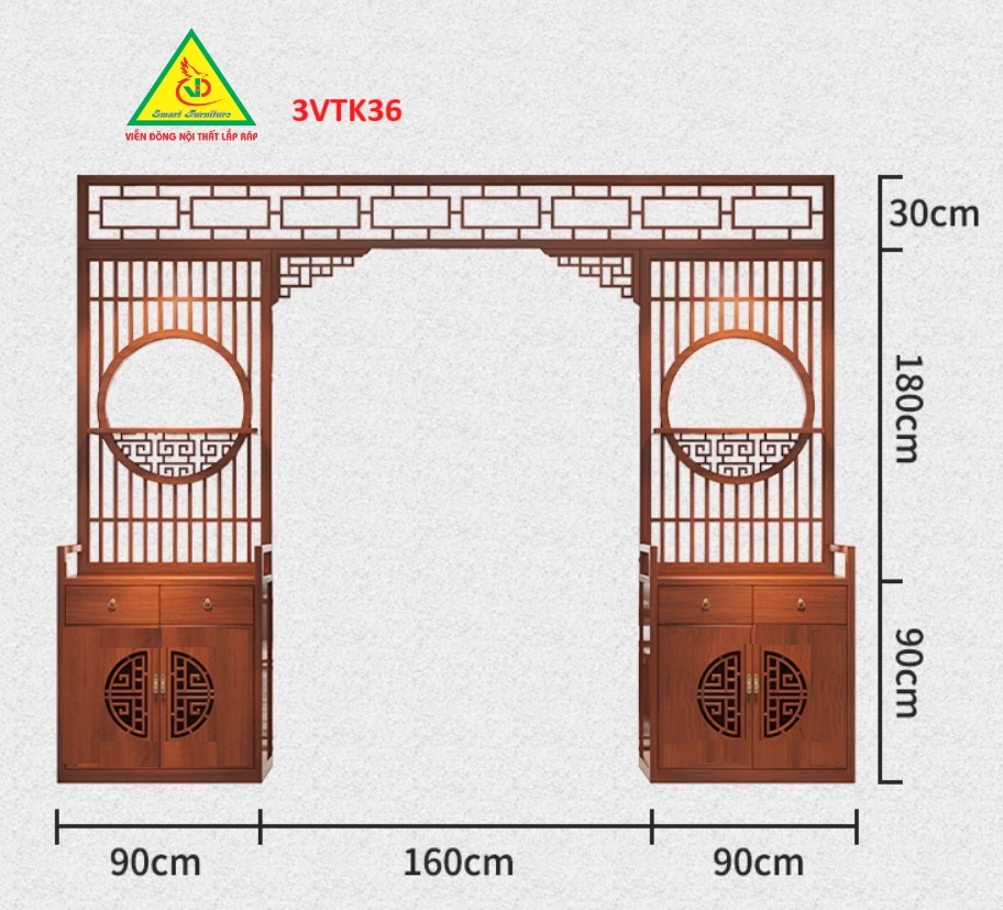 Kích thước : Cao 300cm ngang 340cm sâu 30cm ( theo kích thước yêu cầu)