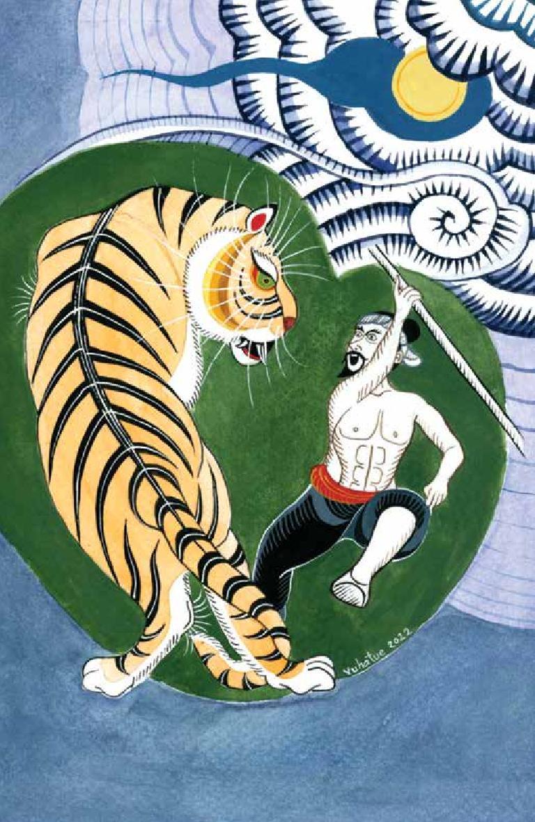 Bối cảnh những câu chuyện vào thời Tây Sơn, lúc ấy, không riêng gì Bình Định, mà các vùng khác còn khá hoang sơ với chốn rừng núi hiểm hóc, Cọp vẫn hay lai vãng vào làng bắt người hoặc trộm gia súc, thú nuôi của người dân. Ở mỗi truyện, là ý chí chiến đấu sống còn của người với cọp và cọp với người. Dù chiến đấu với nhau một mất một còn, nhưng giữa cọp và người, dường như có gì đó vẫn kết nối trong nhau. 5 chuyện Cọp, với những truyện như người giành mồi của cọp, ông già đánh cọp ba chân, hoặc làm sao để cải số bị cọp bắ là những kiểu con người đối mặt với cọp, cọp đối diện với người trong những tình huống khá lắc léo, nguy hiểm và mang cả tính huyền bí. Với vùng đất giỏi võ như Bình Định, truyện kể sắc nét khía cạnh những con người, vốn dĩ rất bình thường nhưng đặc biệt giỏi võ cũng như thông thạo các thuộc tính của thú dữ.