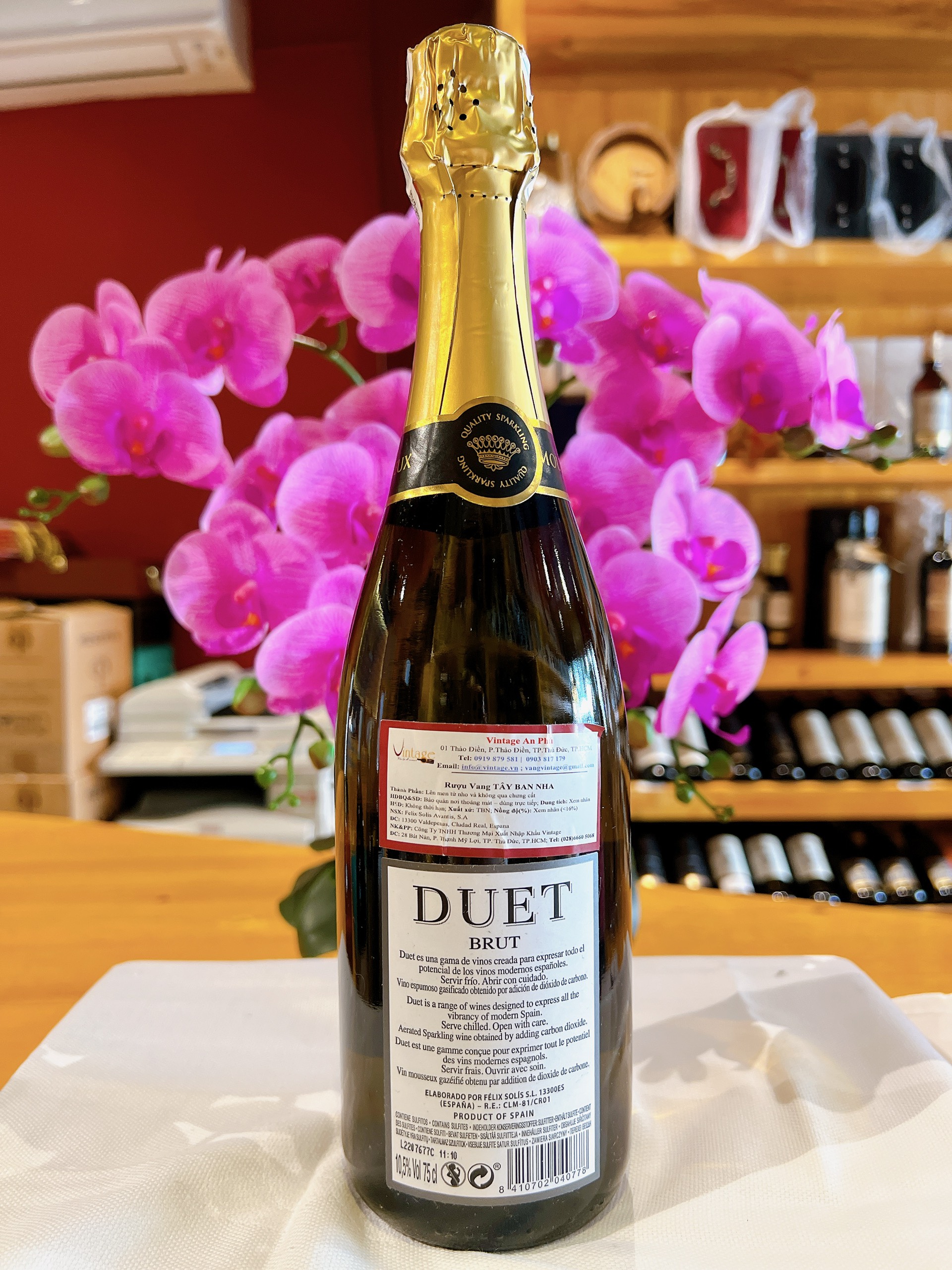Mua tại TiktokDuet – bản song ca của hương vị - là một trong những dòng vang được tạo ra để thể hiện tất cả sự sống động của đất nước Tây Ban Nha hiện đại. Loại Vang này được làm bằng phương pháp truyền thống dưới sự kiểm soát chặt chẽ về chất lượng. Vangcó màu vàng nhạt, bong bóng đẹp, đều liên tục, hương thơm tươi mát của các loại trái cây tươi và thảo mộc. Vị chua nhẹ, hậu vị sản khoái dễ chịu, cho một khởi đầu lý tưởng