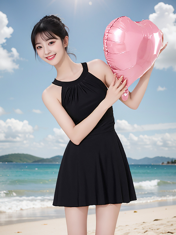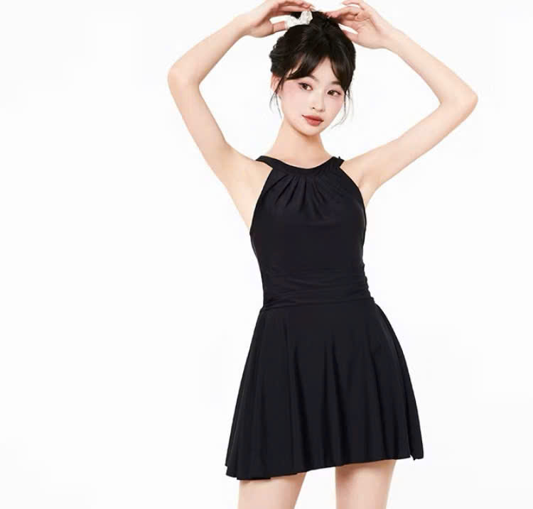 ✨Váy bơi nữ liền cổ yếm có quần đùi liền thời trang màu đen sang trọng
