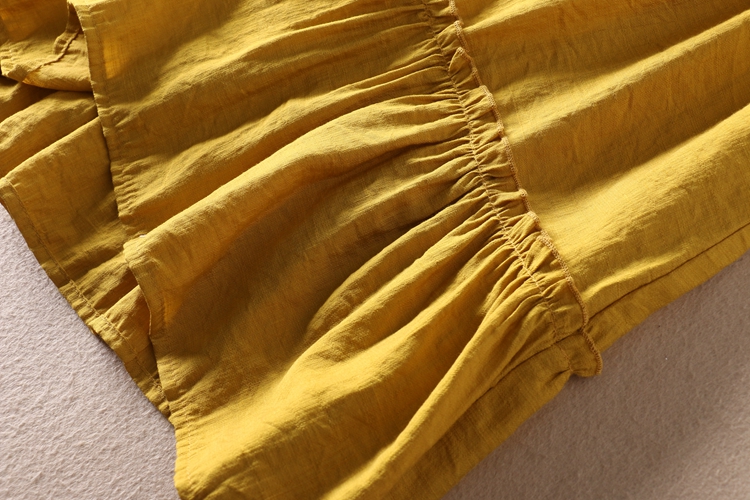 ღ THÔNG TIN SẢN PHẨM:   Tên sản phẩm: Đầm babydoll vàng tay con   Màu sắc: vàng   Chất liệu: chất gân ý   Chi tiết sản phẩm: không lót, không túi   Thông