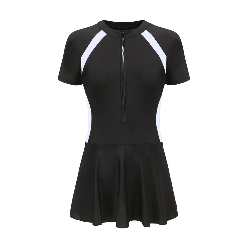 - Mẫu đồ bơi liền thân phong cách năng động tươi mới cho các cô gái trẻ trung. - Dáng cộc tay quần sooc đùi ôm gọn gàng cơ thể, khóa kéo trước tiện dụng