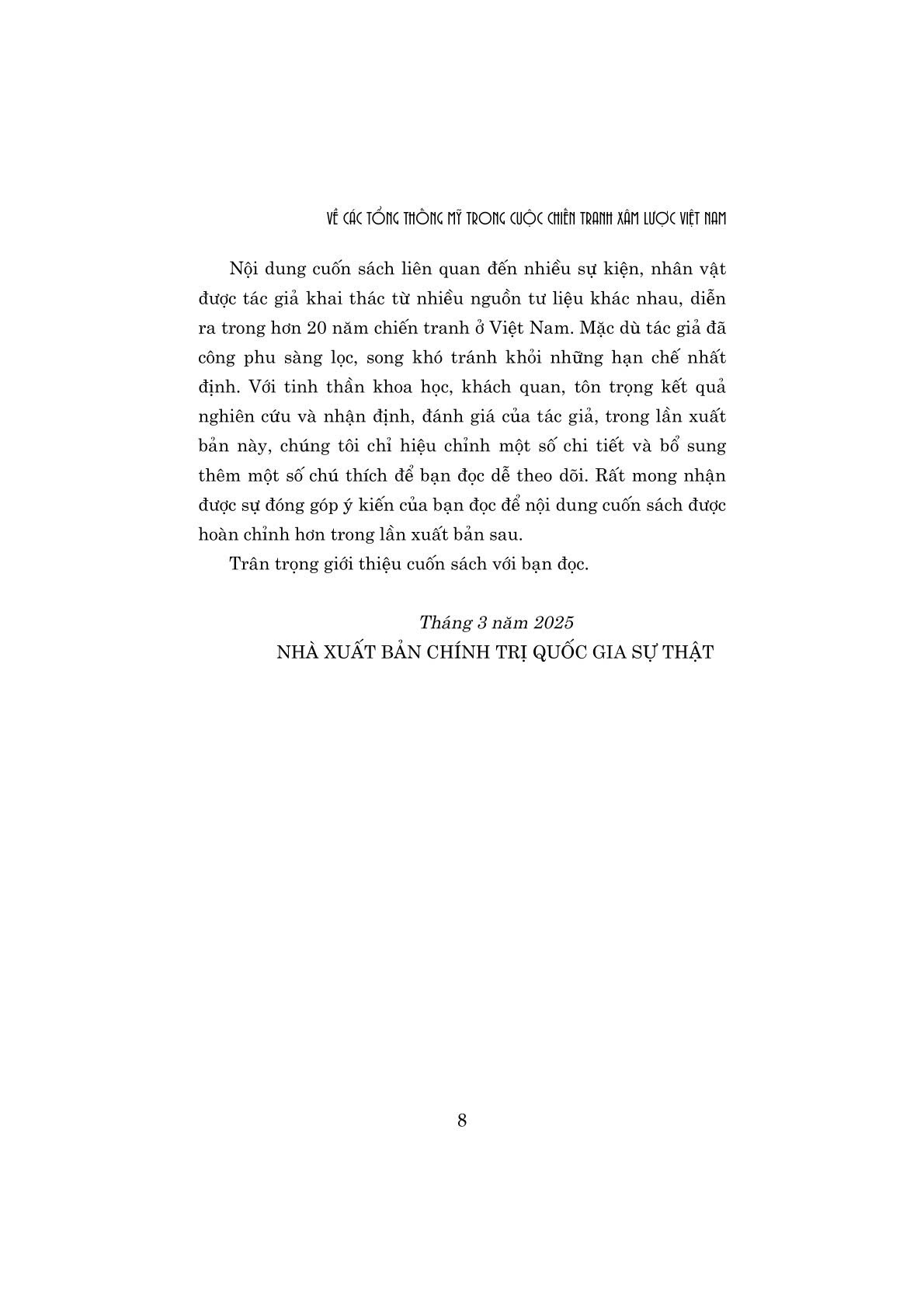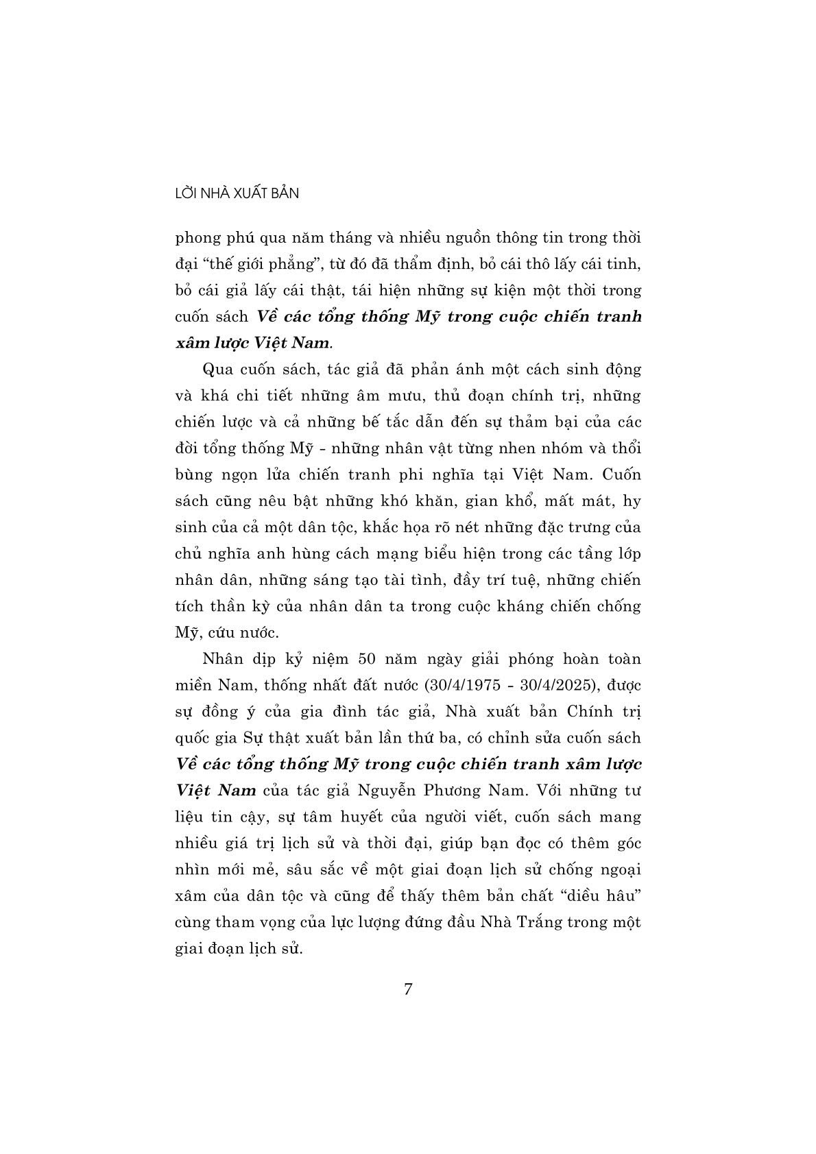 ✨Về các Tổng thống Mỹ trong cuộc chiến tranh xâm lược Việt Nam ( Xuất bản lần thứ ba có chỉnh sửa) bản in 2025