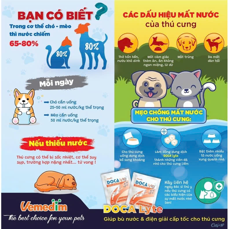 ✨Vemedim Doca lyte Bột Pha Uống Bù Điện Giải Cấp Tốc cho Chó Mèo - Gói 6.8g