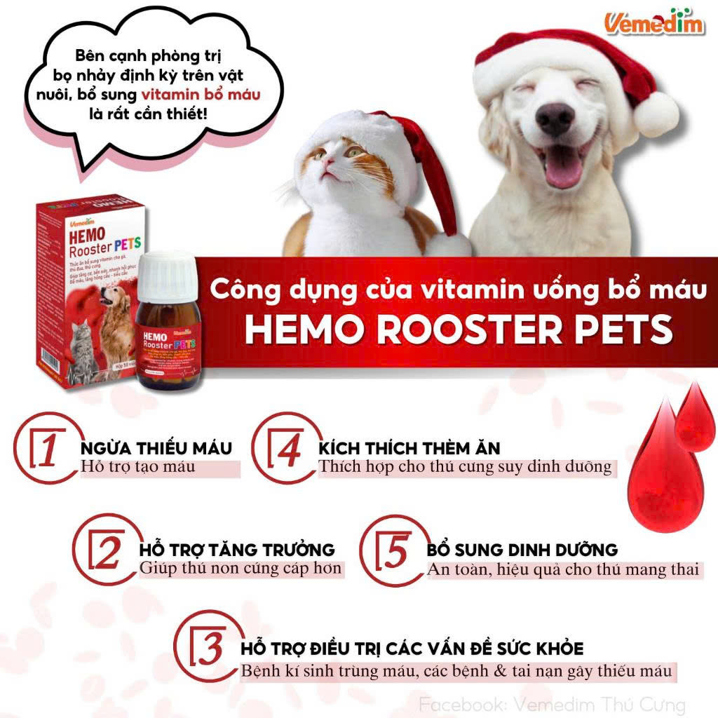 Hemo rooster pets - Bổ sung vitamin cho gà, thú đua, thú cưng. Giúp tăng cơ, bền sức, nhanh hồi phục. Bổ máu, tăng hồng cầu - tiểu cầu