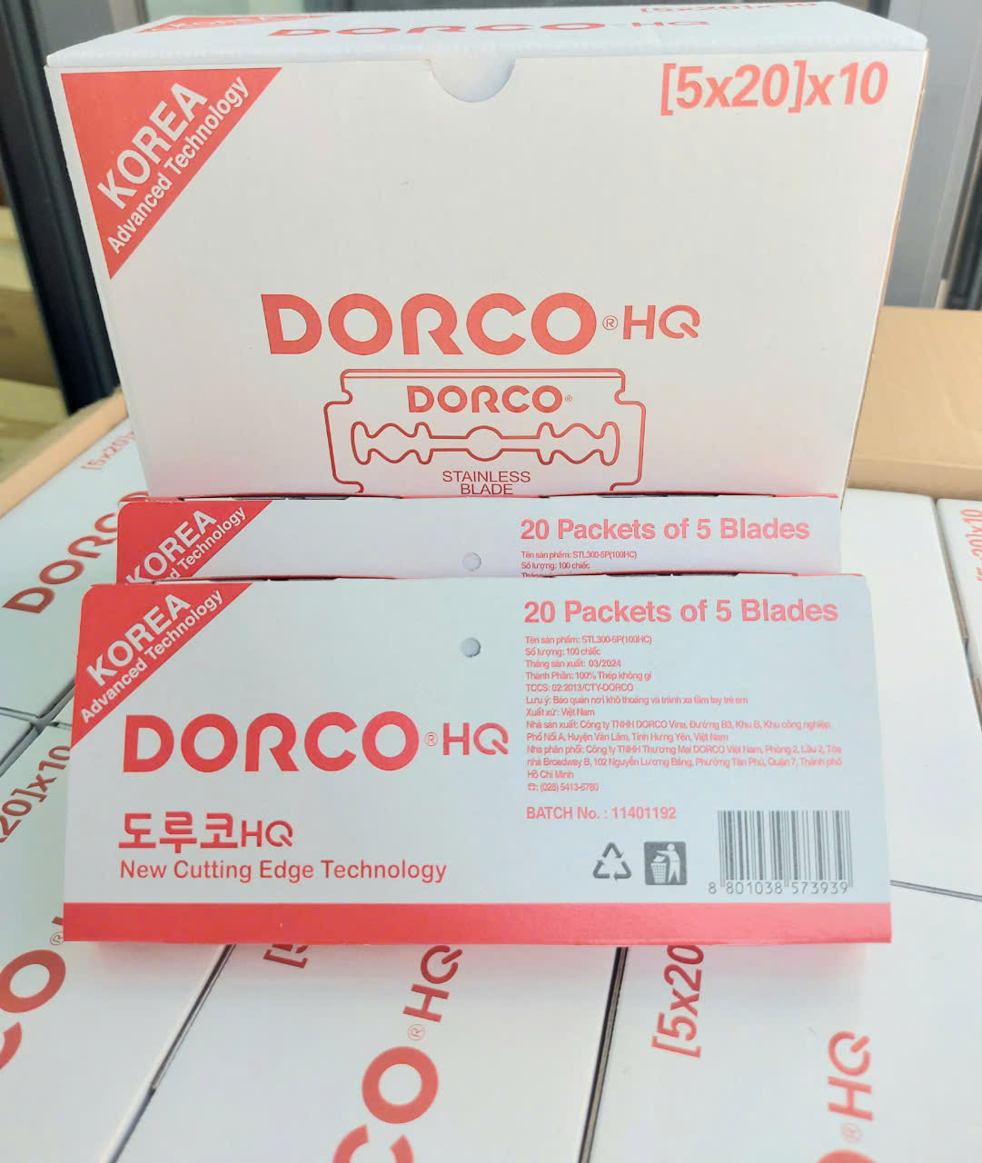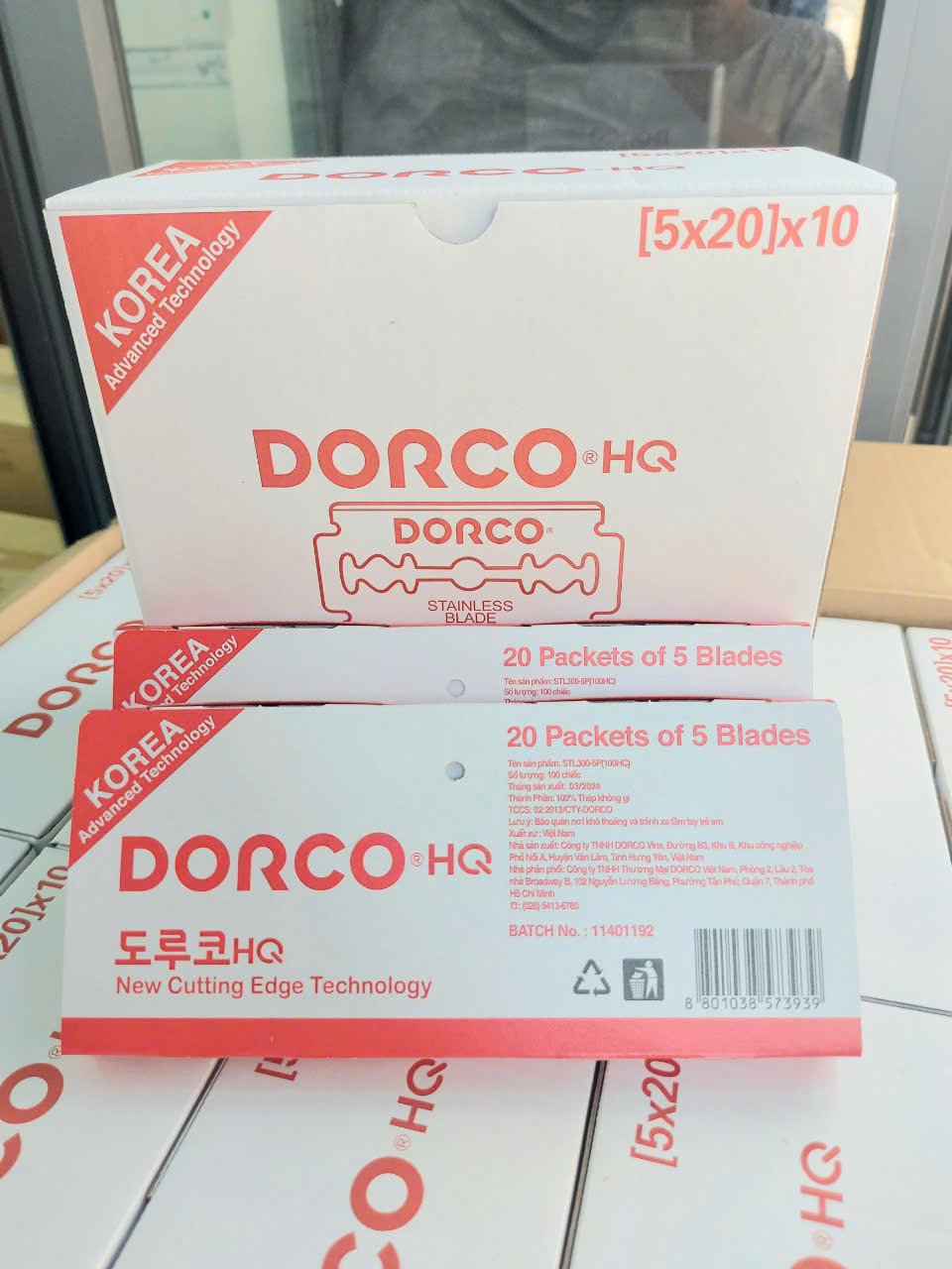 Vỉ 100 hộp lưỡi lam Dorco HQ màu đỏ ( Dao lam Dorco Đỏ) là sản phẩm lưỡi dao Dorco chính hãng Hàn Quốc Sản phẩm có độ mỏng lưỡi dao là 0.075mm giúp lưỡi dao tăng độ sắc bén. Lưỡi lam Dorco HQ màu đỏ đươc sản xuất bao phủ kim loại nhiều lớp gia tăng độ bền, chống lại sự ăn mòn, tạo cảm giác thoải mái cho người sử dụng. Cấu tạo lưỡi dao 4 lớp: Lớp ngoài cùng là lớp màng nhựa bôi trơn cực mỏng, lớp tứ 2 là lớp màng mỏng chống ăn mòn. Lớp tứ 3 là lớp màng gia tăng độ bền và lớp trong cùng là lớp thân lưỡi độ cứng cao. Công dụng trong nghành điện thoại dùng để cao film ,cắt film Ngoài ra rất được ưa chuộng trong làm đẹp : cạo mặt,cạo râu,cạo chân mày,,,