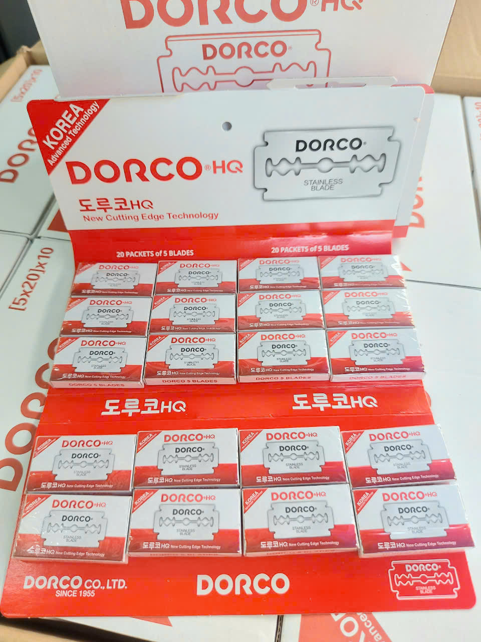 Vỉ 100 hộp lưỡi lam Dorco HQ màu đỏ ( Dao lam Dorco Đỏ) là sản phẩm lưỡi dao Dorco chính hãng Hàn Quốc Sản phẩm có độ mỏng lưỡi dao là 0.075mm giúp lưỡi