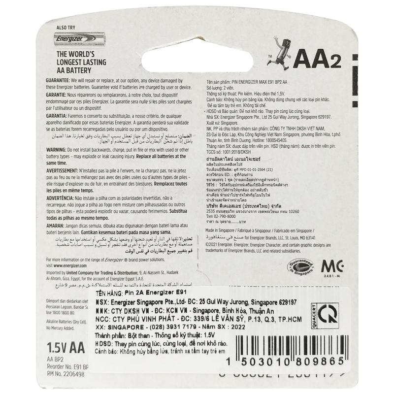 Vỉ 2 pin tiểu Energizer Max AA 1.5v