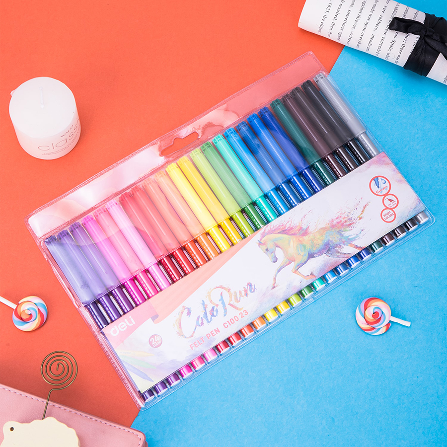 - Vĩ Bút Dạ Nước 24 Màu Deli C10023 - Giao Màu Ngẫu Nhiên sẽ giúp bé làm quen, phân biệt những màu sắc cơ bản và giúp bé sáng tạo nên những bức tranh