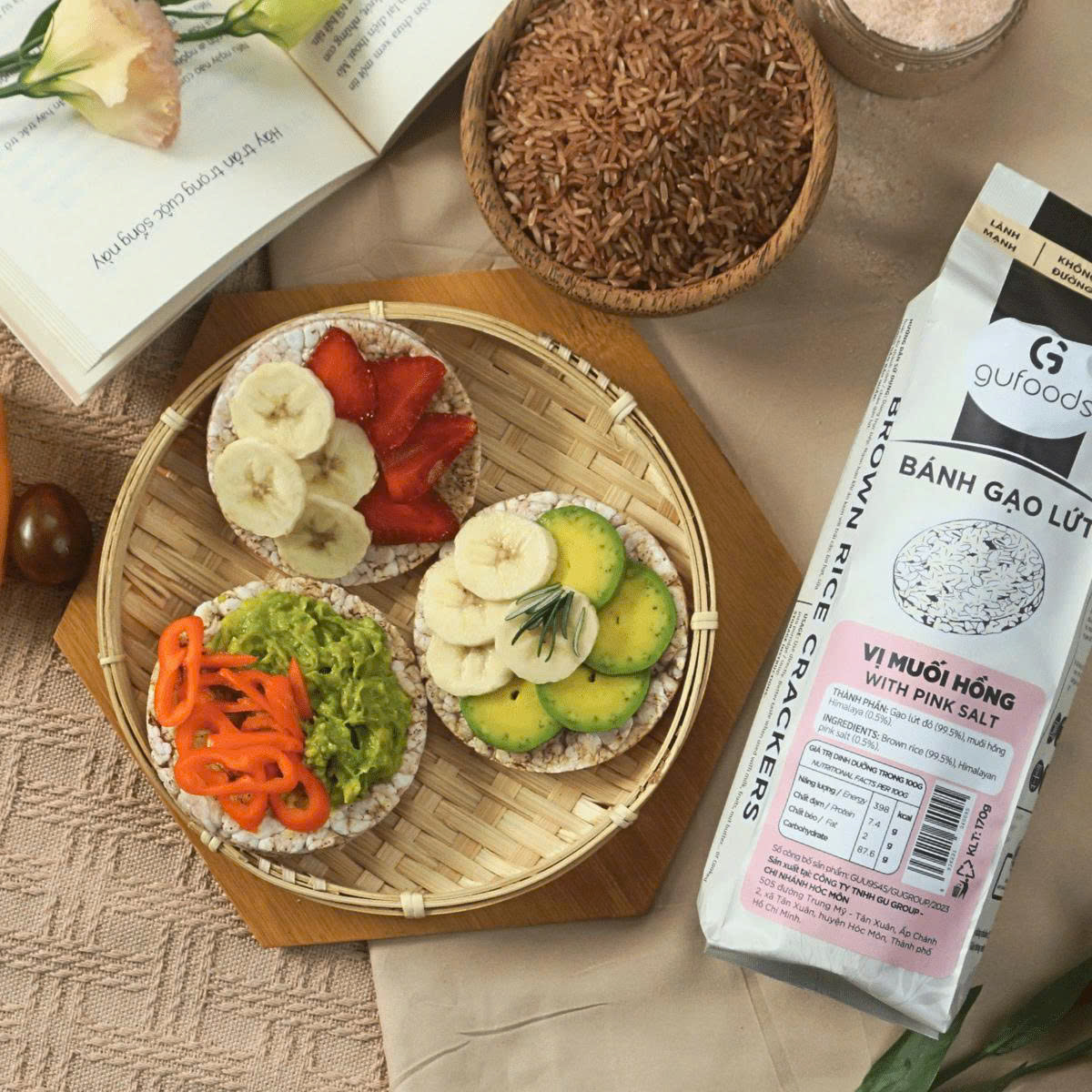GIỚI THIỆU Bánh gạo lứt nguyên hạt GUfoods là sự kết hợp giữa hạt gạo lứt Việt Nam giàu chất xơ và công nghệ ép thuỷ lực hiện đại, giúp giữ trọn tối đa giá