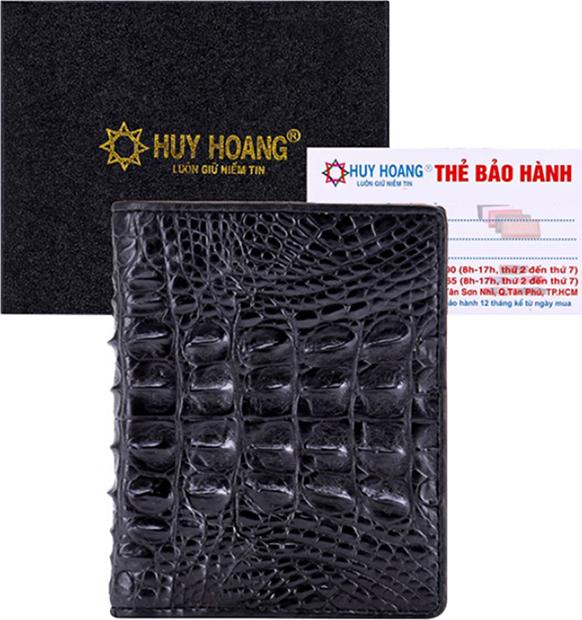 ✨Ví Nam Da Cá Sấu Gai Lưng Kiểu Đứng Huy Hoàng HT2256 (12.5 x 10 cm) - Đen