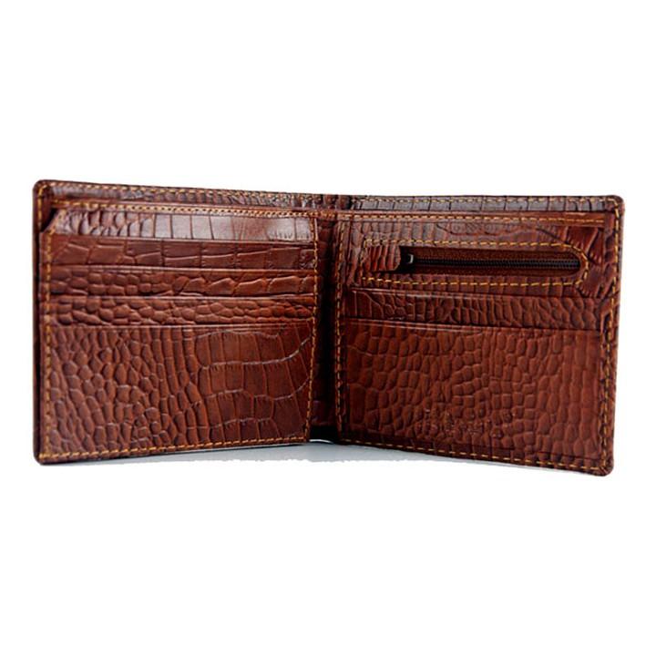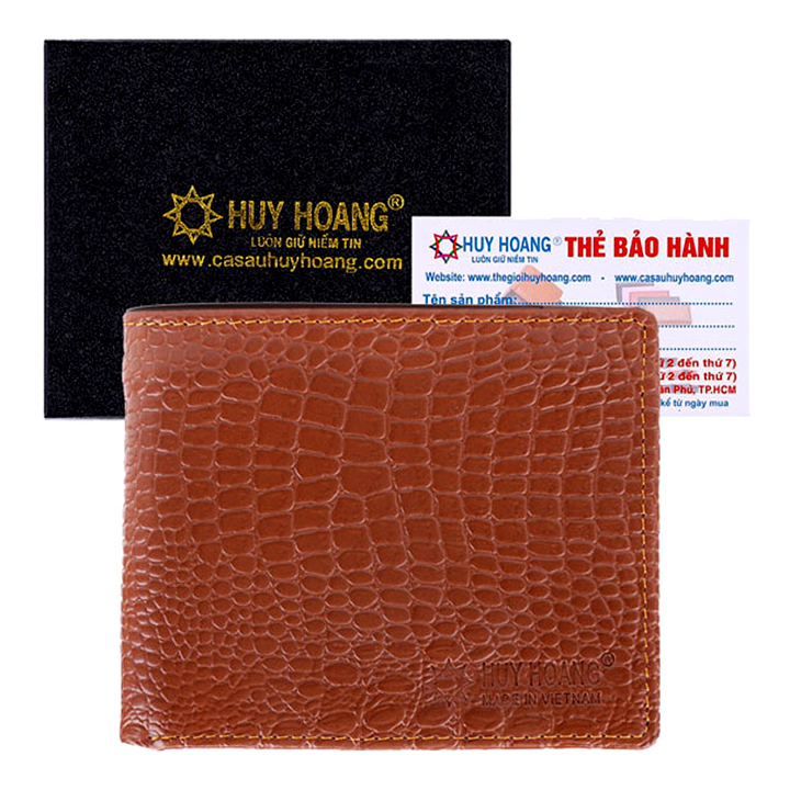 Ví/Bóp nam Huy Hoàng da bò vân cá sấu màu nâu 2112