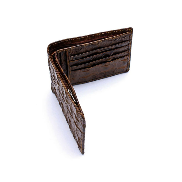 Ví/Bóp nam Huy Hoàng da bò vân cá sấu màu nâu 2118