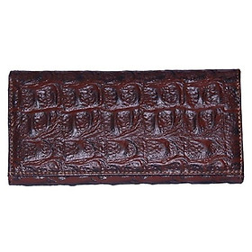 Ví/Bóp nữ da bò Huy Hoàng vân cá sấu lớn 3 gấp màu nâu đỏ 3169