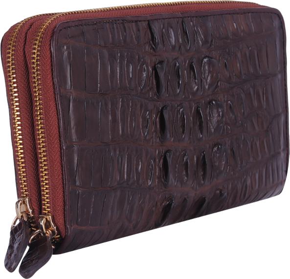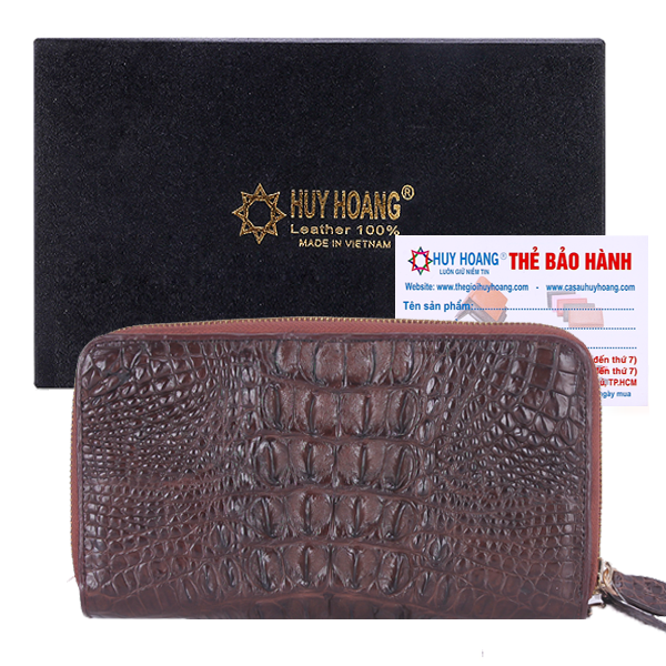 Ví/Bóp nữ da bò Huy Hoàng vân cá sấu nhiều ngăn màu nâu 3134