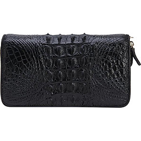 Ví/Bóp nữ da bò Huy Hoàng vân cá sấu nhỏ 1 khóa màu đen 3170