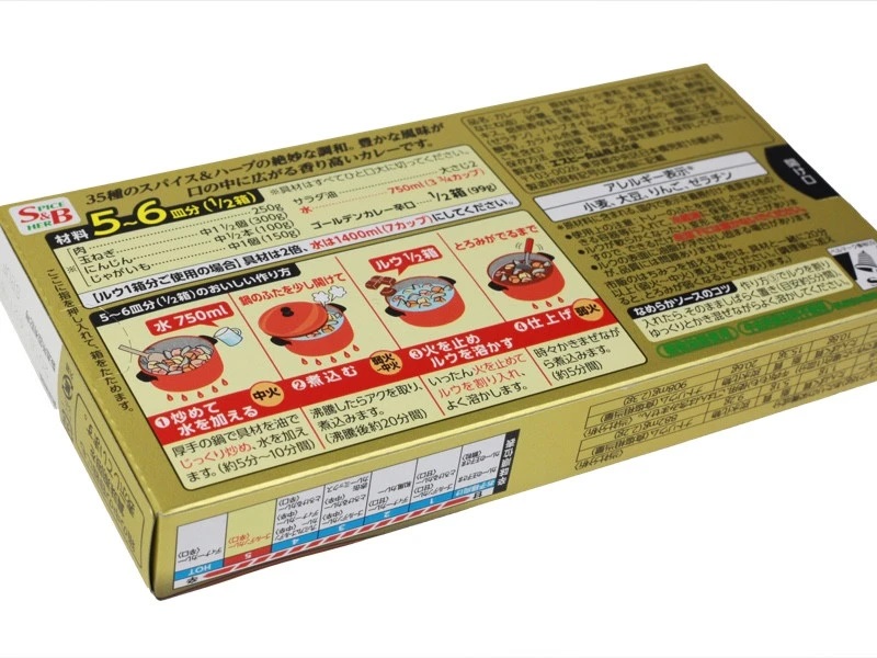 - Quy cách: Hộp 198g Nhắc đến cà ri mọi người thường sẽ nghĩ ngay đến ẩm thực Ấn Độ, quốc gia được biết đến với món cà ri ngon trứ danh. Món ăn này đã được người Anh đưa vào Nhật Bản và trải qua nhiều sự thay đổi để phù hợp với khẩu vị của người Nhật và dần dần cũng trở thành món ăn yêu thích của không chỉ người Nhật mà còn của rất nhiều người yêu thích ẩm thực Nhật Bản. Hầu hết các gia đình người Nhật sử dụng viên gia vị nấu cà ri đủ loại được bán sẵn trong các siêu thị hoặc các cửa hàng tiện lợi ở Nhật. Loại gia vị này rất đa dạng về mùi vị, độ ngọt, độ cay…tuỳ theo khẩu vị ưa thích từng người. Viên nấu cà ri này cũng giúp mọi người có thể thưởng thức được món cà ri đúng chuẩn Nhật Bản ở mọi nơi, vô cùng tiện lợi. Viên nấu cà ri sử dụng 35 loại thảo mộc và gia vị được tuyển chọn nghiêm ngặt. Các loại gia vị có hương thơm đặc trưng như quả bạch đậu khấu, thì là, ngò rí…được rang lên giúp dậy mùi, cho món cà ri thêm thơm ngon, đậm đà. Các loại thảo mộc được hòa trộn cùng dầu thực vật giúp giữ được hương vị thơm ngon dài lâu. Có 3 loại: vị ngọt, vị cay vừa và vị cay phù hợp với tất cả mọi người. Mỗi hộp có 2 vỉ, mỗi vỉ nấu được 5~6 phần ăn. Hướng dẫn sử dụng (phần 5~6 người ăn): 1/Xào với lửa trung bình 250g thịt, 1/2 củ hành tây (300g), 1/2 củ cà rốt (100g), 1 củ khoai tây (150g) với 30ml dầu ăn trong một nồi lớn cho các nguyên liệu chín tái. Thêm 500ml nước vào nồi (nấu 5~10 phút). 2/Sau khi sôi, vớt bọt, mở hé nắp nồi, nấu với lửa nhỏ ~ trung bình khoảng 20 phút. 3/Tắt bếp, cho 2 viên (ít hay nhiều hơn tùy khẩu vị) nấu cà ri vào nồi (1/4 hộp), để viên cà ri tan hoàn toàn. 4/Bật bếp lại với lửa nhỏ, vừa nấu vừa khuấy đều khoảng 5 phút rồi thưởng thức. Hướng dẫn Bảo quản
