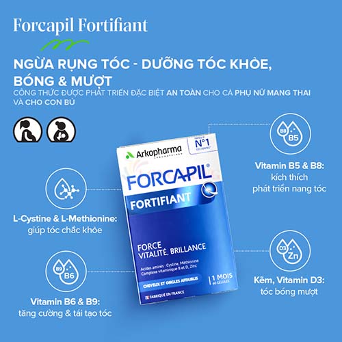 Viên uống Arkopharma Forcapil Fortifiant là giải pháp toàn diện cho tóc và móng. Với công thức giàu vitamin và khoáng chất, sản phẩm giúp nuôi dưỡng, phục hồi tóc hư tổn, giảm gãy rụng