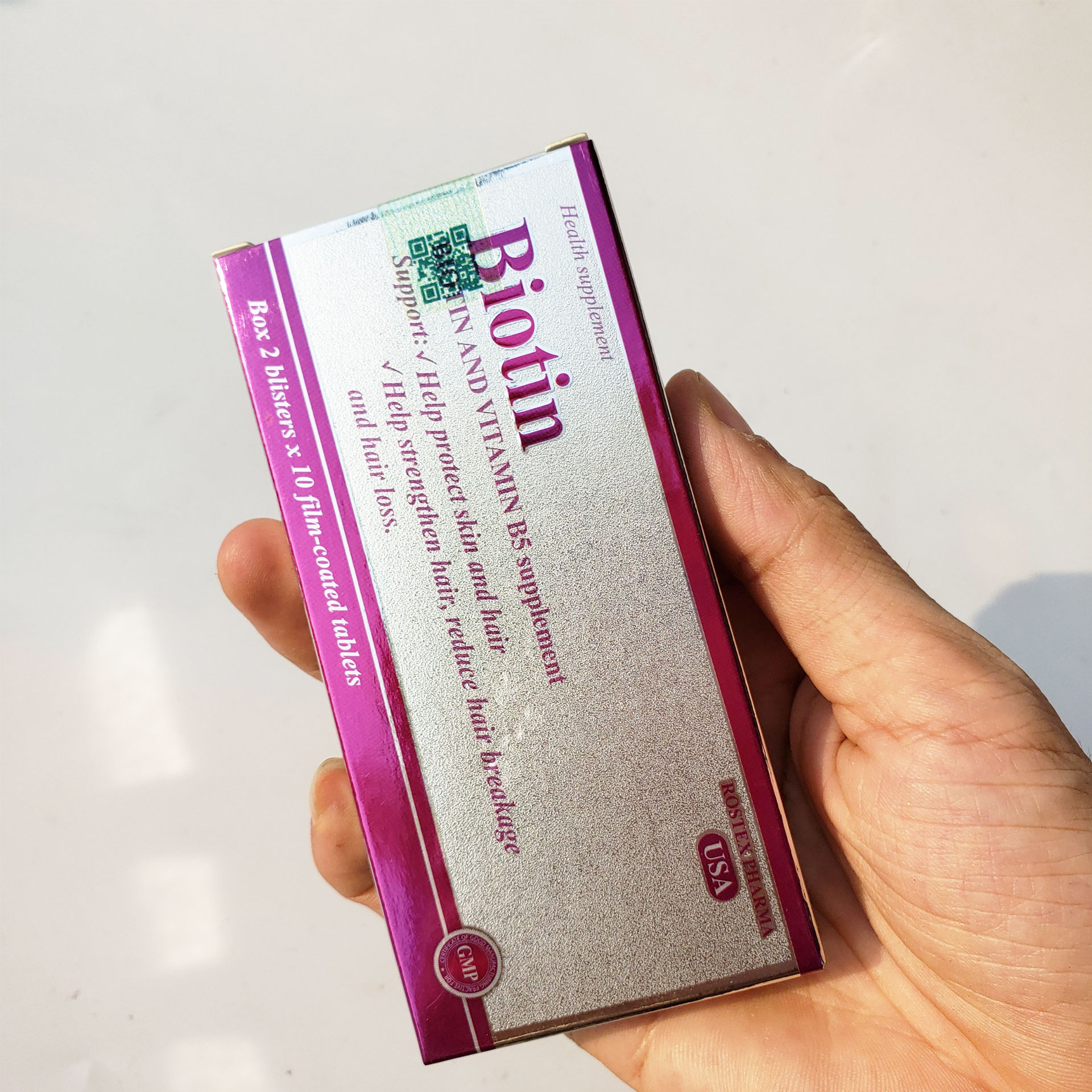- Biotin giúp tóc chắc khỏe, đẹp và mượt mà. HƯỚNG DẪN SỬ DỤNG BIOTIN- Dùng mỗi lần 1 viên, ngày 1 lần, sau ăn.