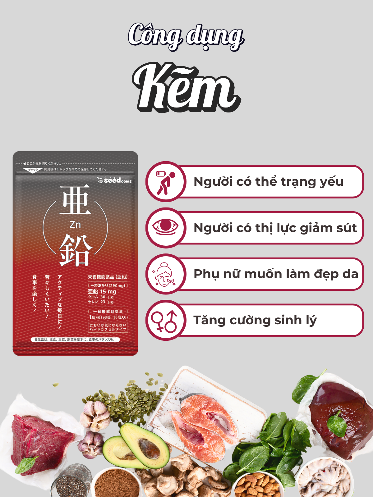 ✨Viên Uống Bổ Sung Kẽm Hỗ Trợ Tăng Cường Sinh Lý, Giúp Tóc Chắc Khỏe, Giảm Gãy Rụng, Đẹp Da Seedcoms Nhật Bản