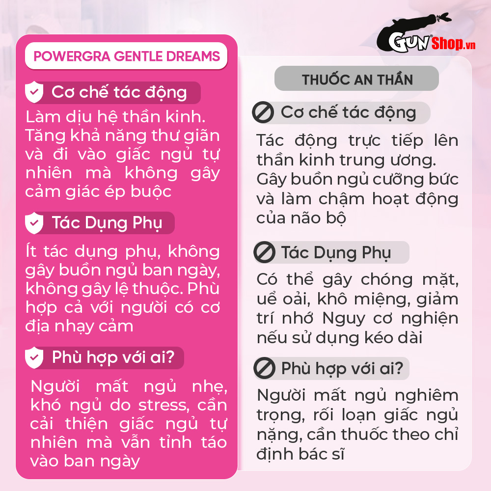 Viên uống cải thiện tình trạng mất ngủ Powegra Gentle Dreams | Gunshop Việt Nam