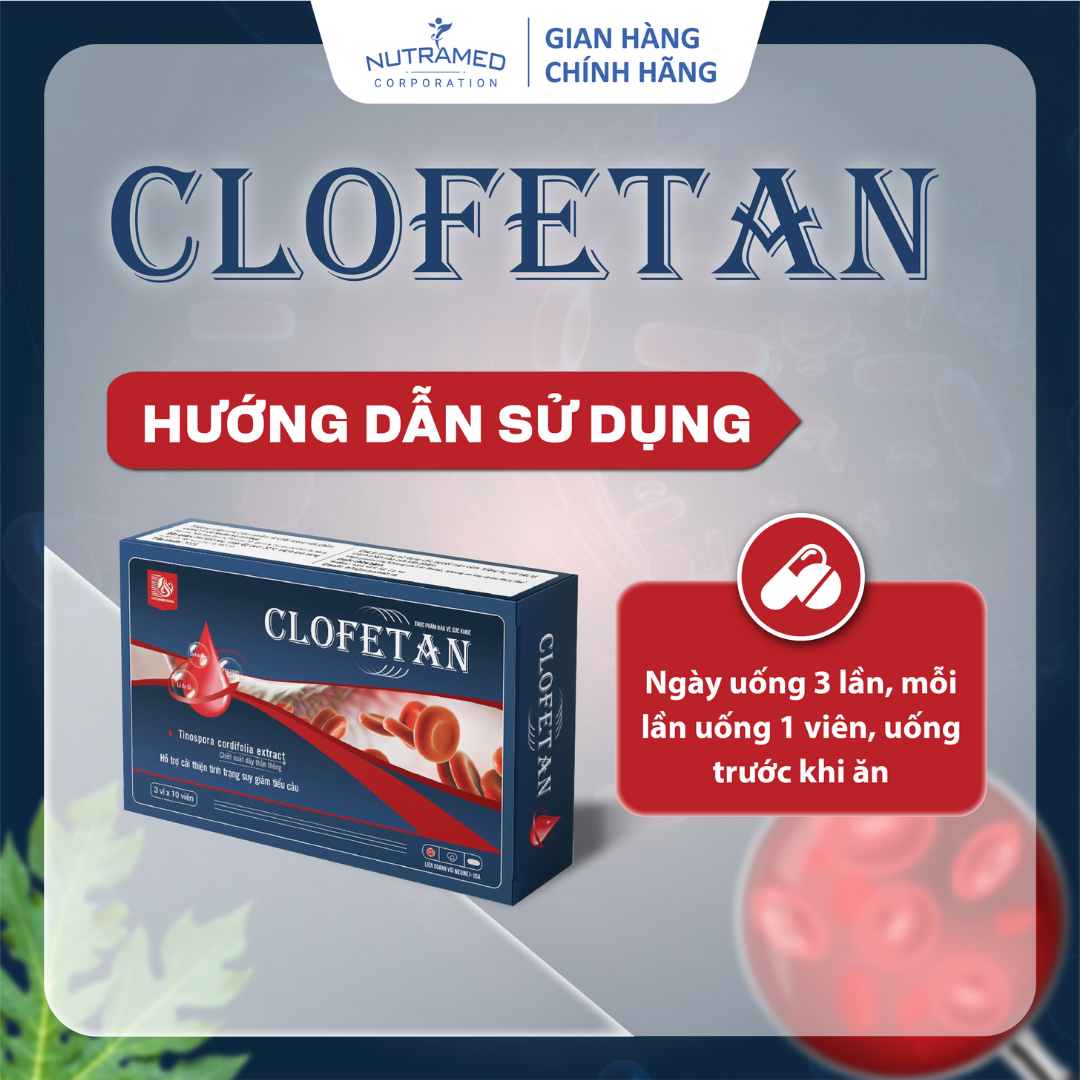 CLOFETAN - Giải pháp hỗ trợ hạn chế nguy cơ giảm tiểu cầu THÀNH PHẦN ️ Chiết xuất lá Đu đủ (Carica papaya leaf extract); Chiết xuất Dây thần thông (Tinospora cordifolia extract)