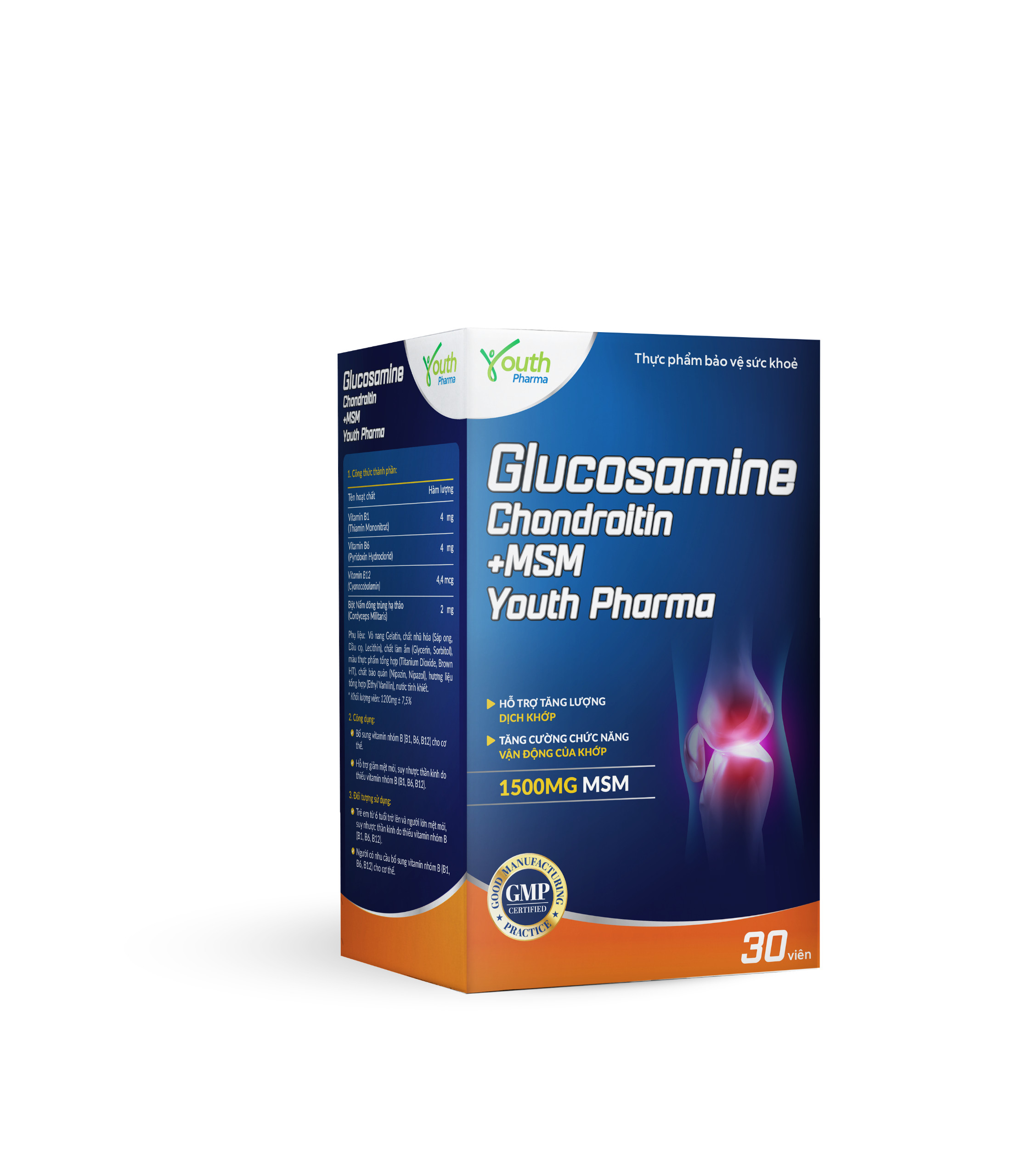 ✨Viên Uống Glucosamine Chondroitin +MSM Youth Pharma Hỗ Trợ Làm Trơn Ổ Khớp, Giúp Khớp Vận Động Linh Hoạt. Hộp 30 Viên