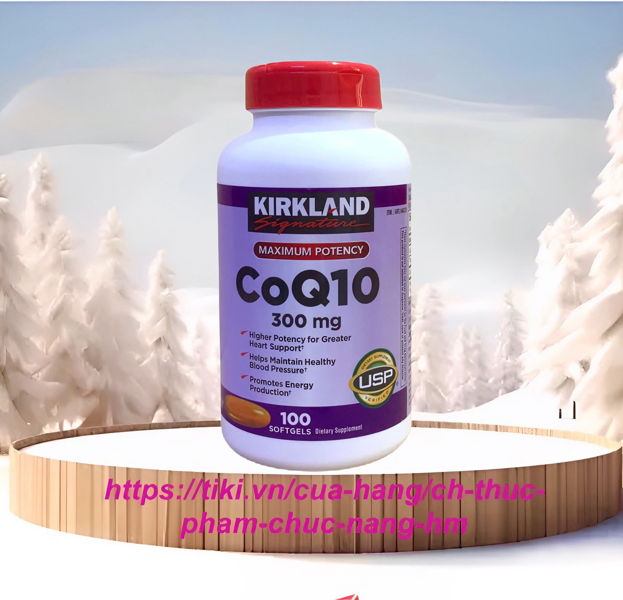 - Công dụng viên uống bổ tim mạch Kirkland Coenzyme Q10 300mg Điều hòa huyết áp, chống quy trình lão hóa Ngăn chặn suy thoái não bộ, tăng cường miễn dịch cho các tế bào Hỗ trợ đtr chứng đau nữa đầu, ổn định tinh thần Giảm các cơn đau cho mắc bệ nh ung thư