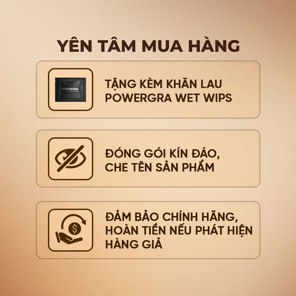 ✪ Thông tin: Powergra For Men Rino được tổng hợp từ các loại thảo dược tự nhiên cao cấp và quý hiếm nên cực kỳ an toàn và tốt cho sức khỏe của người sử dụng. Sản phẩm có tác dụng giúp bổ thận, giúp tăng cường sinh lực, tăng cường sinh lý. Hỗ trợ các nguy cơ mãn dục ở nam giới. Chỉ cần uống 1 viên 2 tiếng trước khi quan hệ, bạn sẽ trở nên sung mãn và phong độ hơn bao giờ hết. Đặc biệt, ngoài tác dụng nhanh tại chỗ, sản phẩm còn giúp bồi bổ cơ thể, giúp cải thiện và phục hồi sinh lý về lâu dài, giúp bạn chấm dứt được tình trạng sinh lý kém làm bạn mất sự tự tin bấy lâu nay. ✪ Thành phần: Eucommia ulmoides; Hippocampus; Morinda Officinalis Stow, Eurycoma longifolia, Herba Epimedii, Clemmy Chinensis Tortoise, Balanophora. Talc, Magnesium Stearat, Nipazin, Nipazol, Polyvinyl Pyrrolidon, Lactose, Ethanol 96%. ✪ Đặc điểm: Hỗ trợ bổ thận, tráng dương, tăng thời gian hoạt động. Đồng thời hồi phục sức khỏe, hồi phục sinh lý cho phái mạnh, giúp phòng ngừa nguy cơ mãn dục ở người nam. ✪ Cách dùng: Bước 1: Uống trực tiếp 1 viên Powergra Rino trước khi có hoạt động thể chất. Bước 2: Dùng khăn lau tặng kèm lau lên thân "cậu bé" trước khi hoạt động 5 phút để vệ sinh làm sạch và tăng thêm thời gian. ✪ Quy cách: Vỉ 1 viên ✪ Xuất xứ: Việt Nam ✪ Thương hiệu: Powergra ✪ Bảo quản: Tại những nơi khô ráo và thoáng mát ✪ Hạn sử dụng: 3 năm kể từ ngày sản xuất ✪ NSX: In trên bao bì ✪ Nhà phân phối: Công ty TNHH Thương Mại Nam Toàn Thịnh ✪ Sản phẩm này không phải là thuốc và không có tác dụng thay thế thuốc chữa bệnh