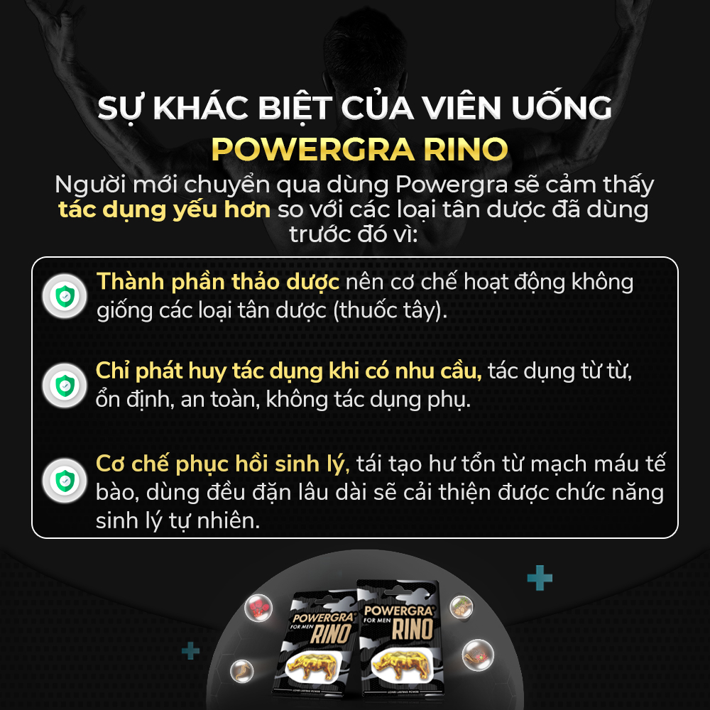 ✪ Thông tin: Powergra For Men Rino được tổng hợp từ các loại thảo dược tự nhiên cao cấp và quý hiếm nên cực kỳ an toàn và tốt cho sức khỏe của người sử