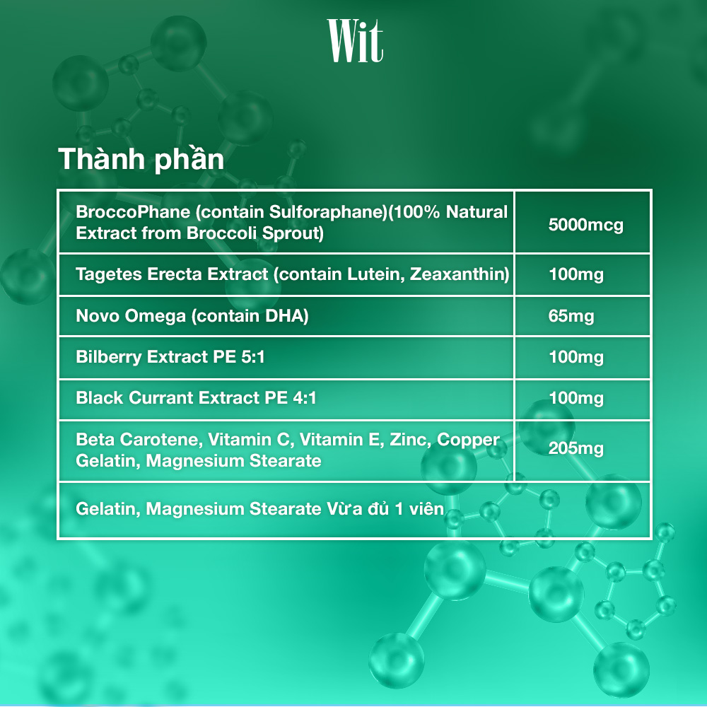 Mua tại Tiktok- CÔNG DỤNG Wit với tinh chất từ Broccophane thiên nhiên giúp hỗ trợ tăng Thioredoxin, bảo vệ tế bào biểu mô sắc tố võng mạc và thủy tinh thể.