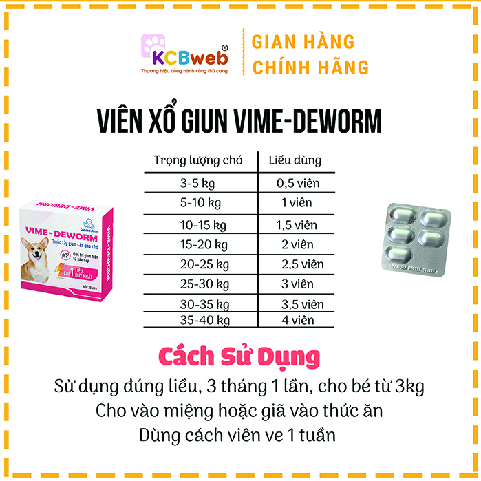 Vemedim vime deworm - thuốc tẩy giun sán cho chó con và chó trưởng thành, chó mẹ