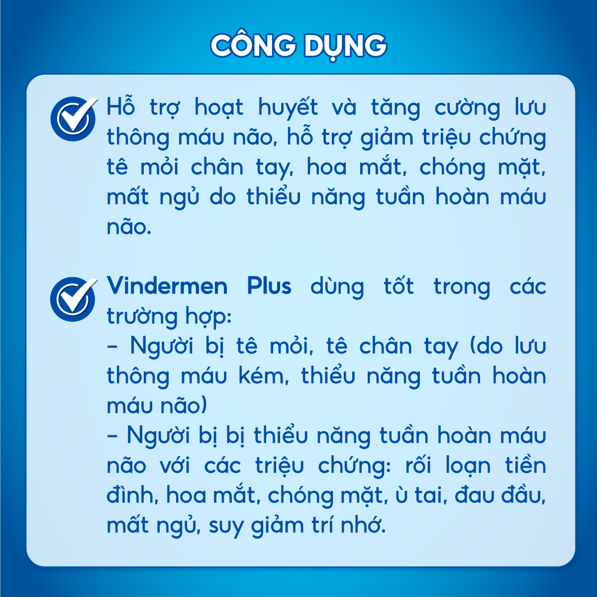 VINDERMEN PLUS GIÚP RỐI LOẠN TUẦN HOÀN MÁU NÃO, ĐAU ĐẦU, CHÓNG MẶT, MẤT NGỦ CẢI THIỆN NHANH!