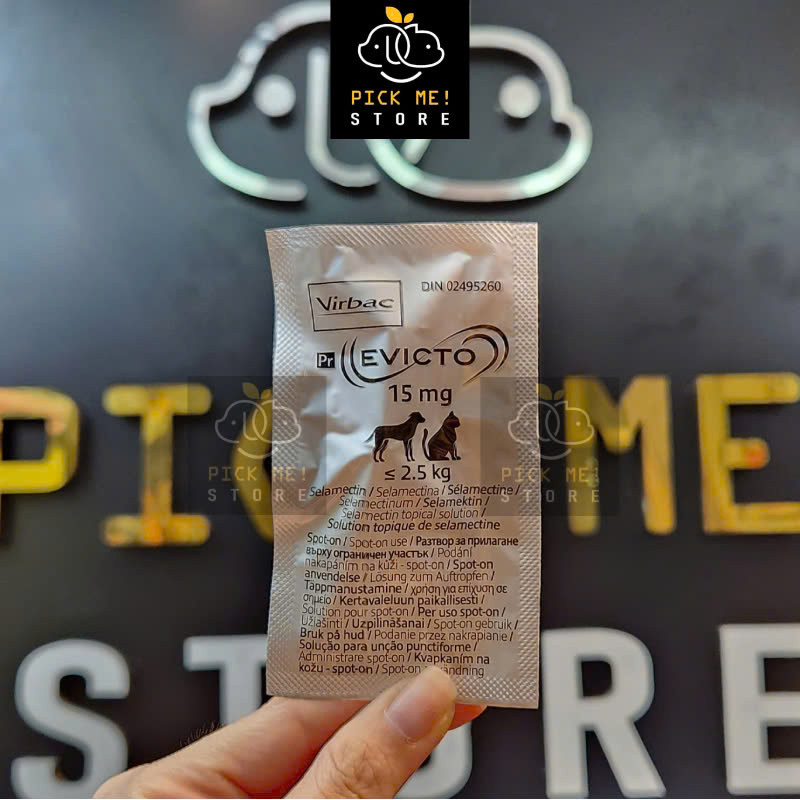 Virbac - Nhỏ Gáy EVICTO Trị Ve Rận, Bọ Chét, Ghẻ Tai, Phòng Ngừa Nội Ngoại Ký Sinh cho Chó Mèo   Evicto là sản phẩm dạng nhỏ gáy (spot-on) dành cho chó và mèo, giúp hỗ trợ bảo vệ thú cưng khỏi các ký sinh trùng nội và ngoại hiệu quả. Thành phần chính: Selamectin: 60mg/ml (dành cho chó/mèo)Selamectin: 120mg/ml (dành cho chó)Công dụng nổi bật: Hỗ trợ phòng ngừa và kiểm soát bọ chét: Tác động lên bọ chét trưởng thành, trứng và ấu trùng, giúp kiểm soát bọ chét trong môi trường sống của thú cưng.Hỗ trợ ngăn ngừa bệnh giun tim: Sử dụng định kỳ hàng tháng giúp giảm nguy cơ nhiễm giun tim do Dirofilaria immitis.Hỗ trợ điều trị ghẻ Sarcoptic và chấy cắn ở chó: Giúp giảm các vấn đề về da do ký sinh trùng gây ra.Hỗ trợ điều trị và kiểm soát giun móc, giun đũa ở mèo: Giúp duy trì sức khỏe đường ruột cho mèo cưng.Ưu điểm của Evicto:   Thẩm thấu nhanh: Hoạt chất ngấm vào cơ thể chỉ trong 2 giờ, cho phép tắm thú cưng sau thời gian này mà không ảnh hưởng đến hiệu quả.An toàn: Được chứng minh an toàn cho chó, mèo từ 6 tuần tuổi, kể cả thú cưng mang thai hoặc đang cho con bú.Dễ sử dụng: Dạng dung dịch nhỏ gáy tiện lợi, không cần xoa sau khi nhỏ.Hướng dẫn sử dụng:   Chuẩn bị: Xoay ngược nắp, đặt lên đầu tuýp thuốc, nhấn nắp xuống để làm thủng lớp màng bảo vệ, sau đó tháo bỏ nắp.Áp dụng: Vạch lông để lộ phần da gáy của thú cưng. Đặt đầu tuýp thuốc trực tiếp lên da, bóp ống tuýp để lấy hết thuốc.Lưu ý: Không cần xoa sau khi nhỏ. Tránh để thú cưng liếm vùng vừa nhỏ thuốc trong ít nhất 2 giờ.Liều lượng:   Sử dụng theo hướng dẫn của bác sĩ thú y hoặc theo chỉ dẫn trên bao bì sản phẩm, tùy thuộc vào trọng lượng và loại thú cưng.Bảo quản:   Để nơi khô ráo, tránh ánh sáng trực tiếp và xa tầm tay trẻ em.Với Evicto, việc chăm sóc và bảo vệ thú cưng khỏi các ký sinh trùng trở nên đơn giản và hiệu quả hơn bao giờ hết.