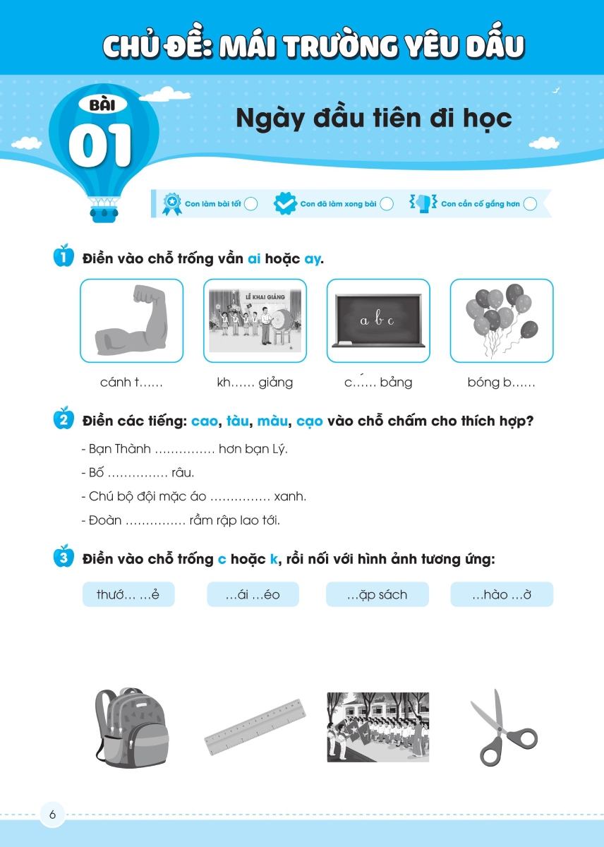 Bài tập luyện viết chính tả các chữ cái, âm, vần và các từ có chứa âm, vần, dấu thanh ở mỗi bài học