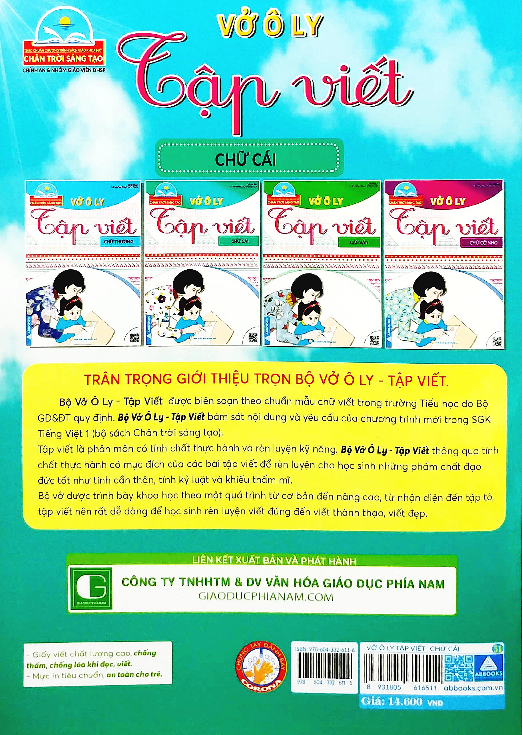 Bộ Vở Ô Ly - Tập Viết được biên soạn theo chuẩn mẫu chữ viết trong trường Tiểu học do Bộ Giáo Dục và Đào Tạo quy định. Bộ Vở Ô Ly - Tập Viết bám sát nội dung và yêu cầu của chương trình mới trong Sách Giáo Khoa Tiếng Việt 1 - Chân Trời Sáng Tạo