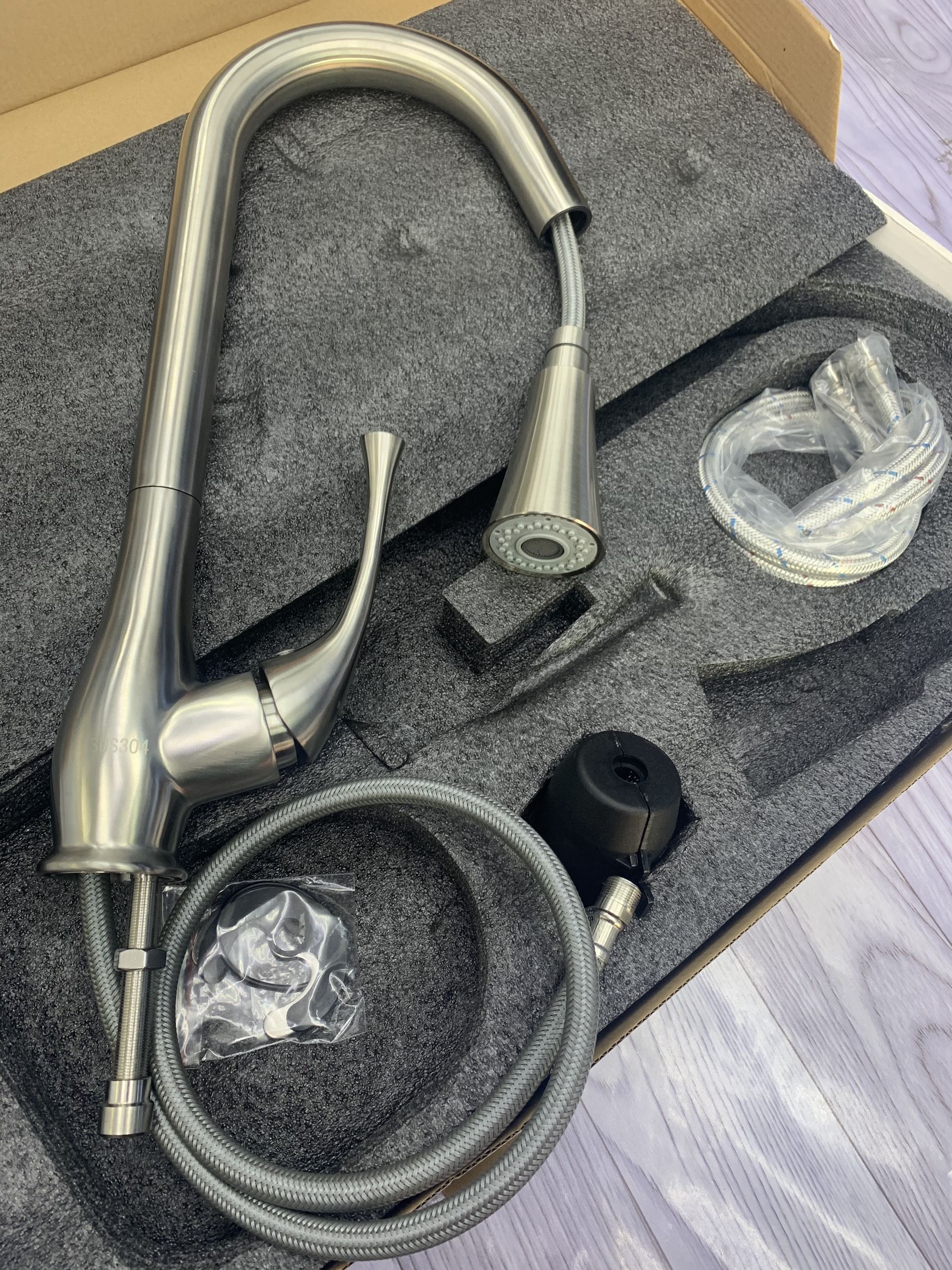 Vòi rửa bát nóng lạnh đầu dây rút, gồm có 2 lựa chọn như sau: Mẫu 1. Mã vòi dây rút R02H, chất liệu inox mờ bền bỉ (màu inox) Mẫu 2. Mã vòi dây