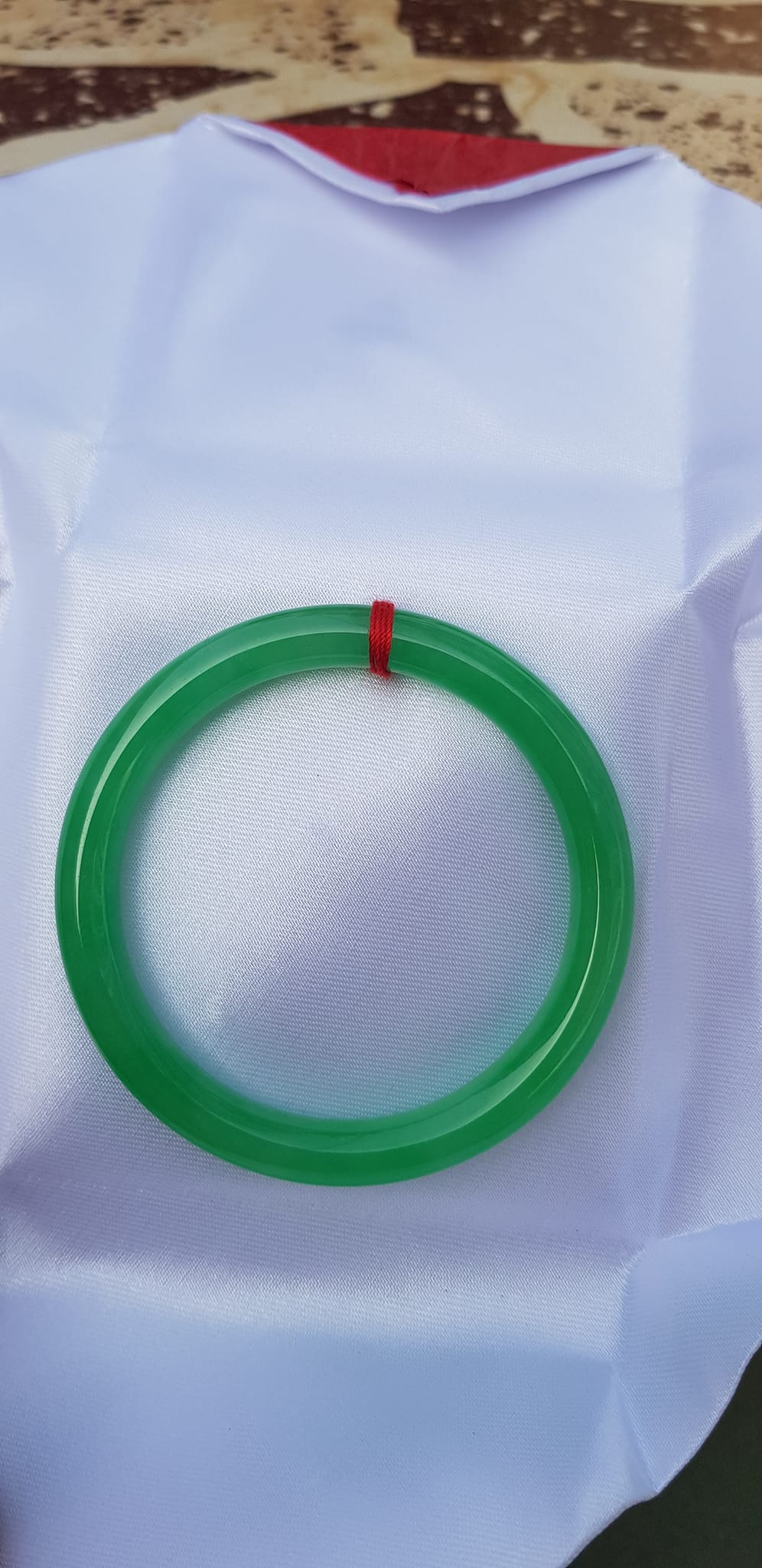 Vòng cẩm thạch Đ Lý 52mm x dầy 7,8mm màu xanh lá tươi hợp Nữ mệnh Mộc mệnh Hỏa 52kg - 56kg đeo ạ