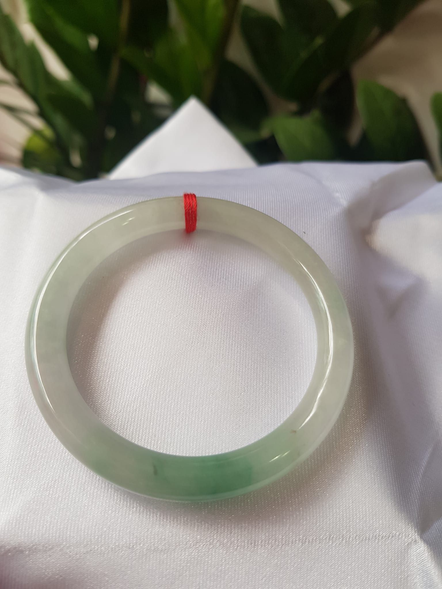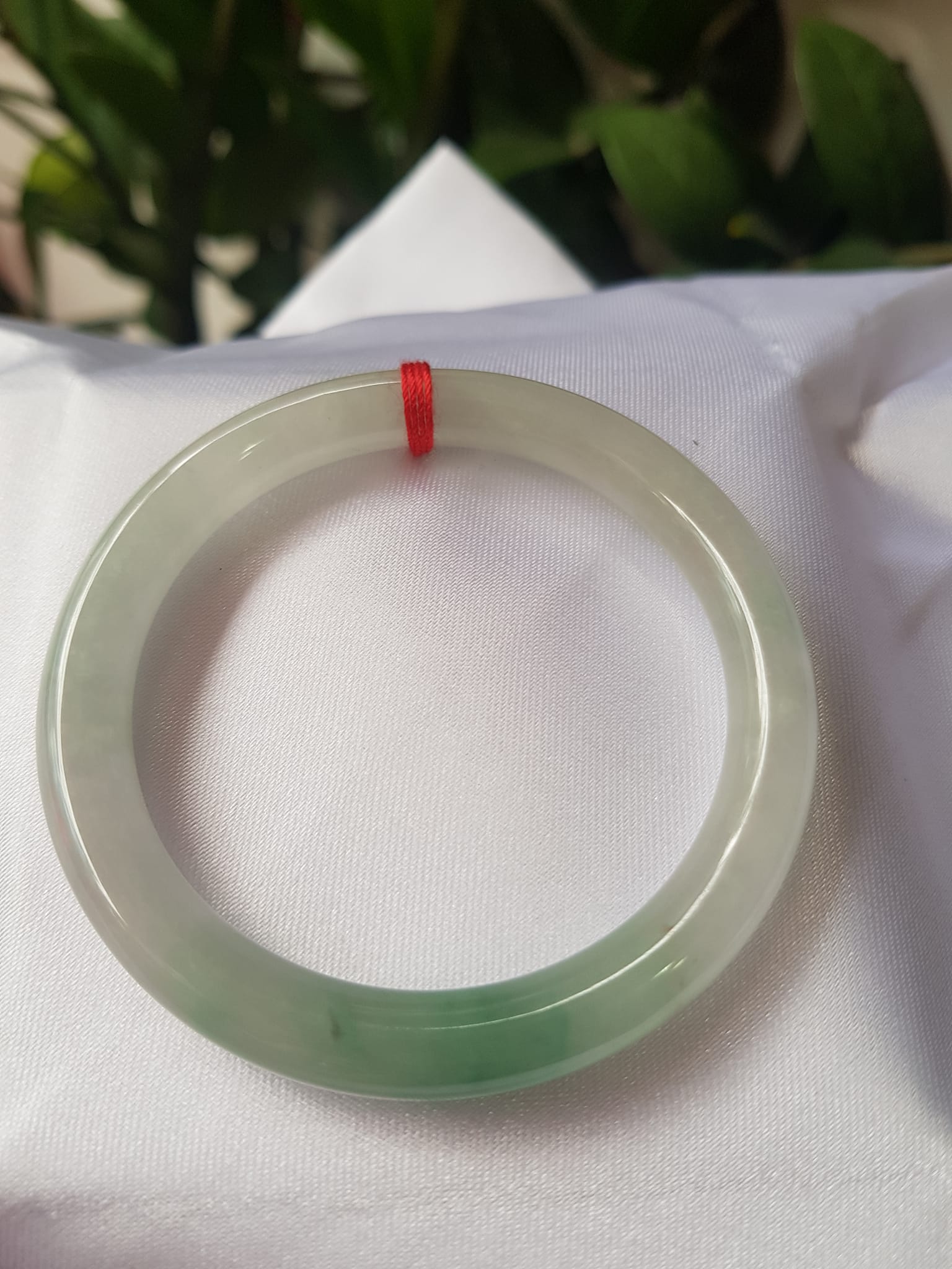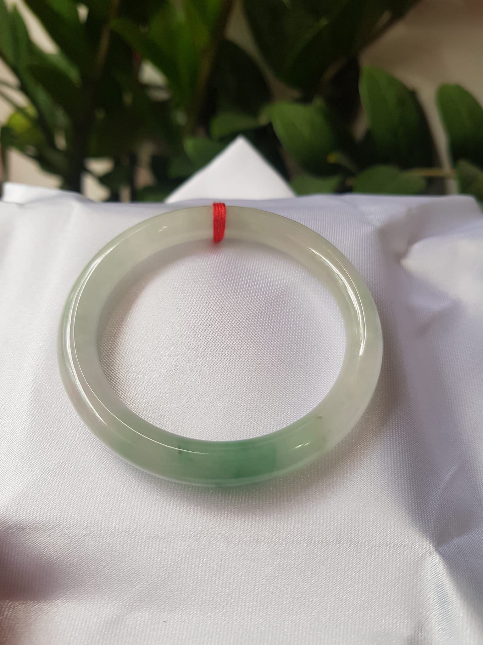 Vòng tay Nữ Đá Cẩm Thạch mới TR Lý 57 mm x cọng 7,5mm Màu Xanh lý tươi trắng 2 bên đều vòng đẹp Nữ 55kg - 64kg đeo đẹp món quà tặng chính mình