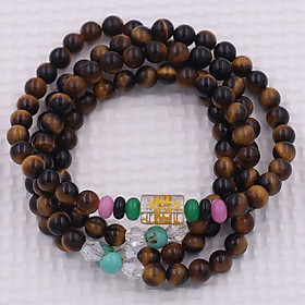 ✨Vòng chuỗi 108 hạt đá mắt hổ vàng đen charm lục tự chân ngôn - hạt 8 ly ( size lớn ), vòng chuỗi niệm Phật, vòng chuỗi đeo tay
