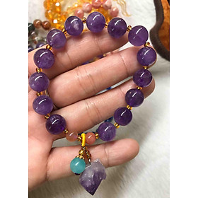 ✨VÒNG ĐÁ THẠCH ANH TÍM KIỂU KẾT VỚI VIÊN ĐÁ THẠCH ANH TÍM ĐEO TAY XINH XẮN 10MM NỮ MỆNH HỎA THỔ