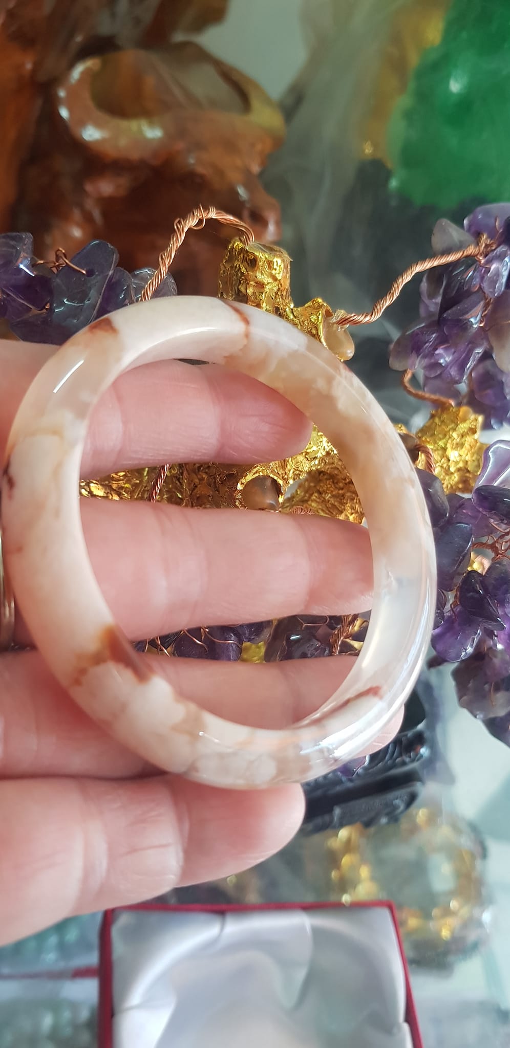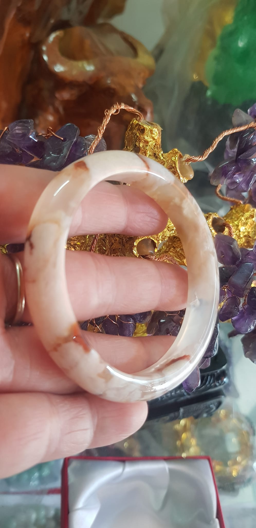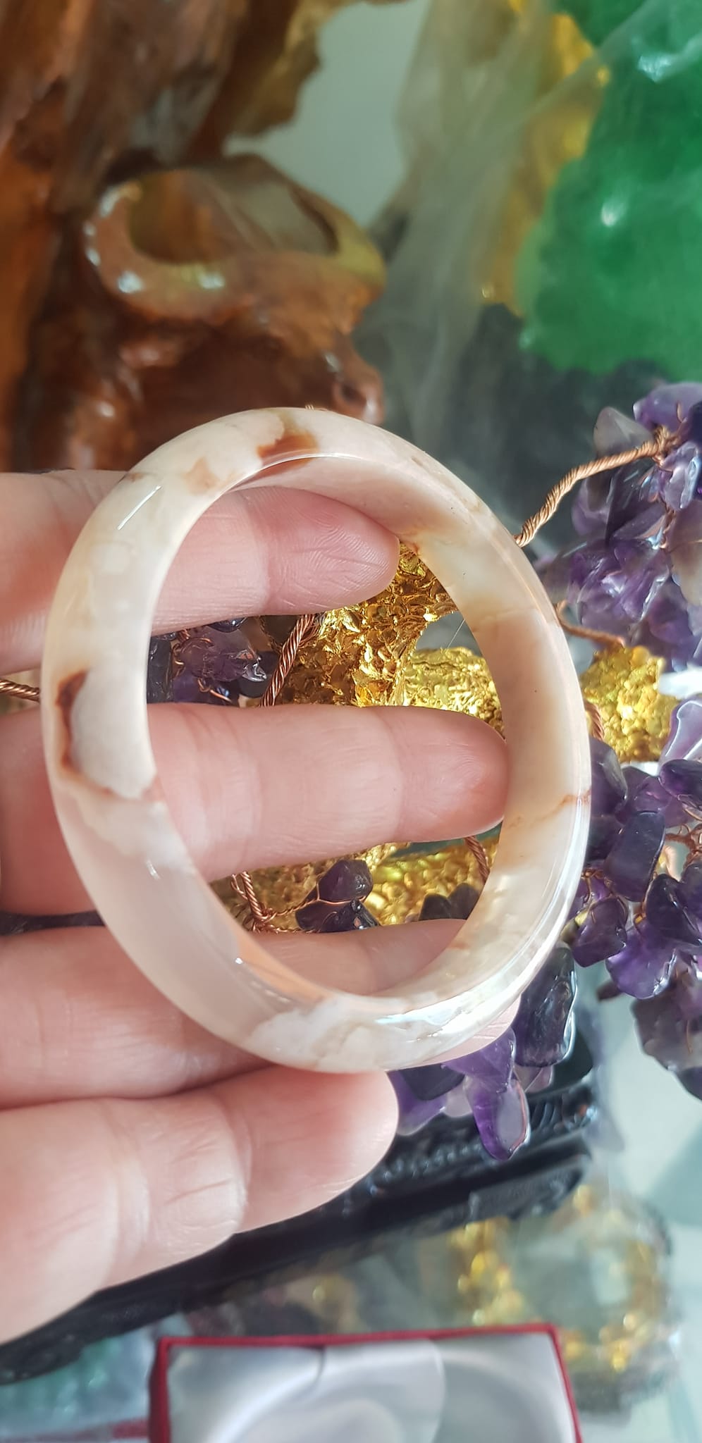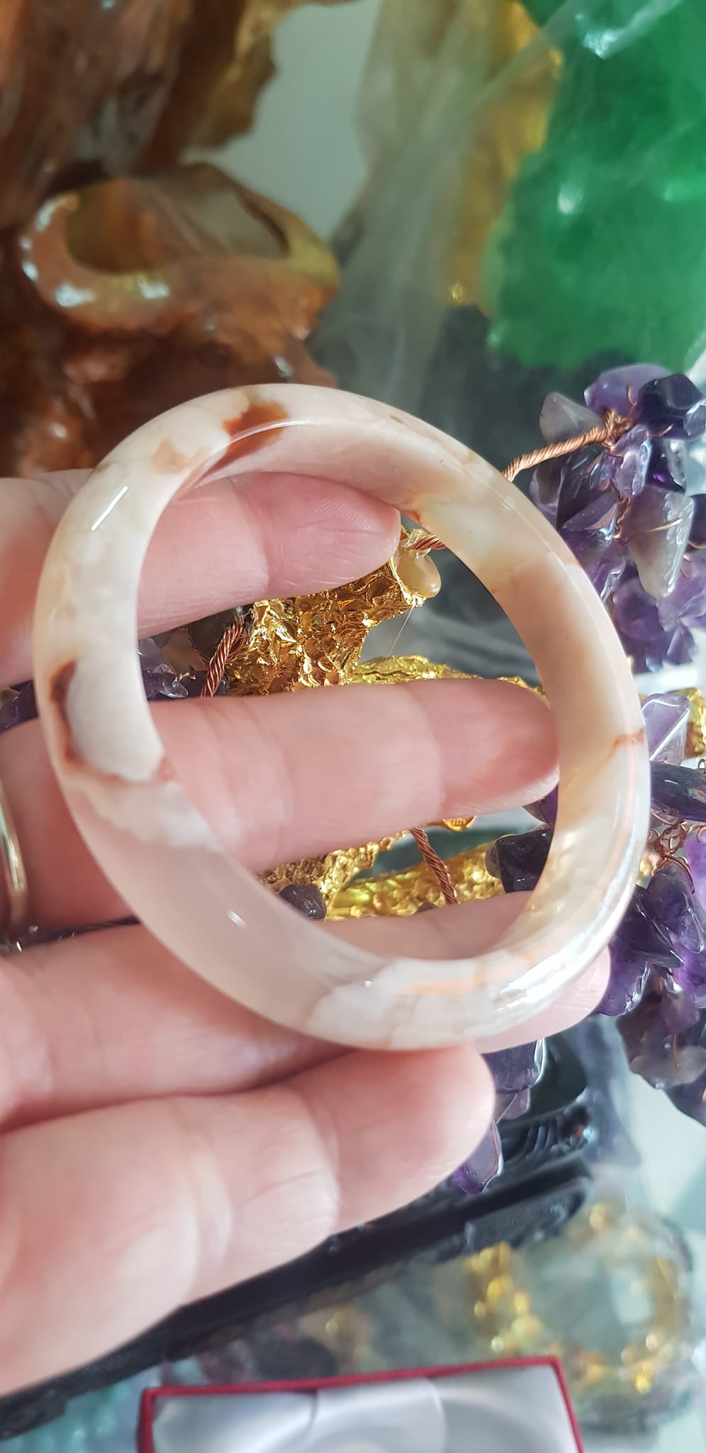 Vòng đeo tay Nữ Bản Hẹ Đá Mã Não Hoa Rau Câu 53mm x Cao 10mm x dầy 7mm bóng đẹp nữ 50kg - 53kg đeo ạ