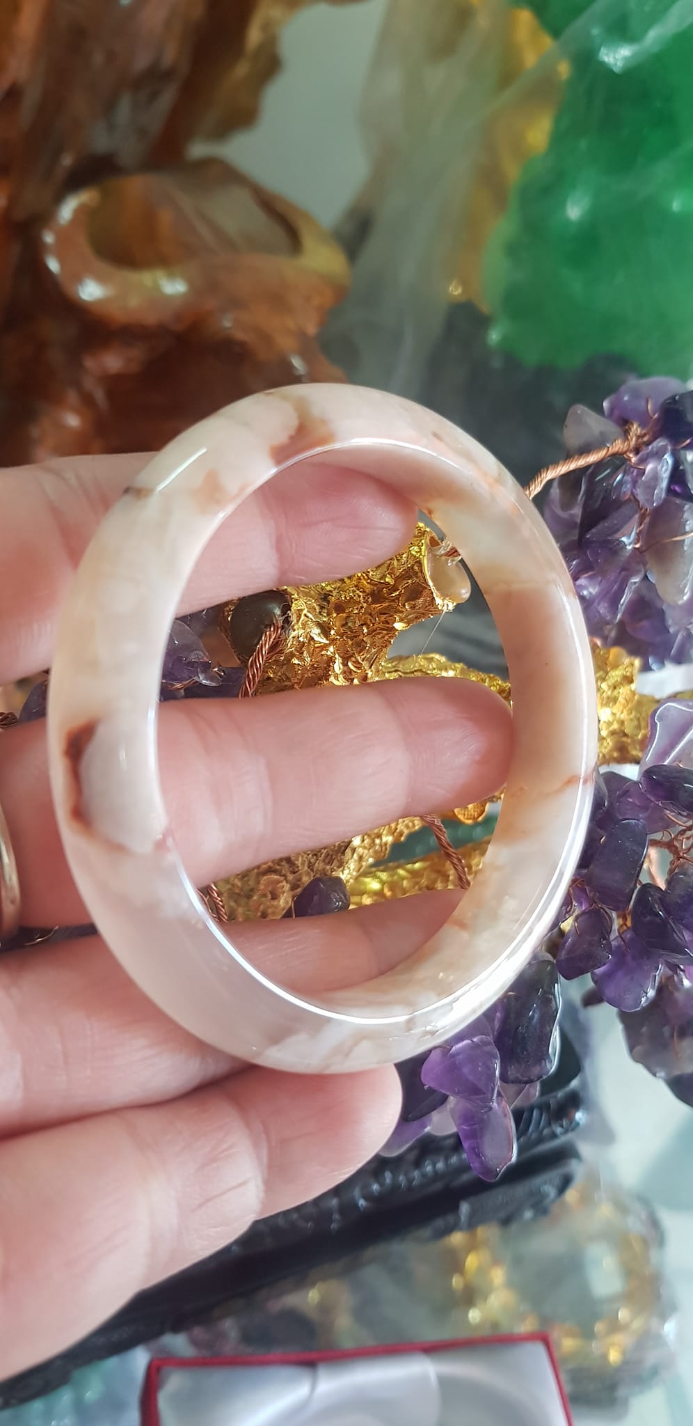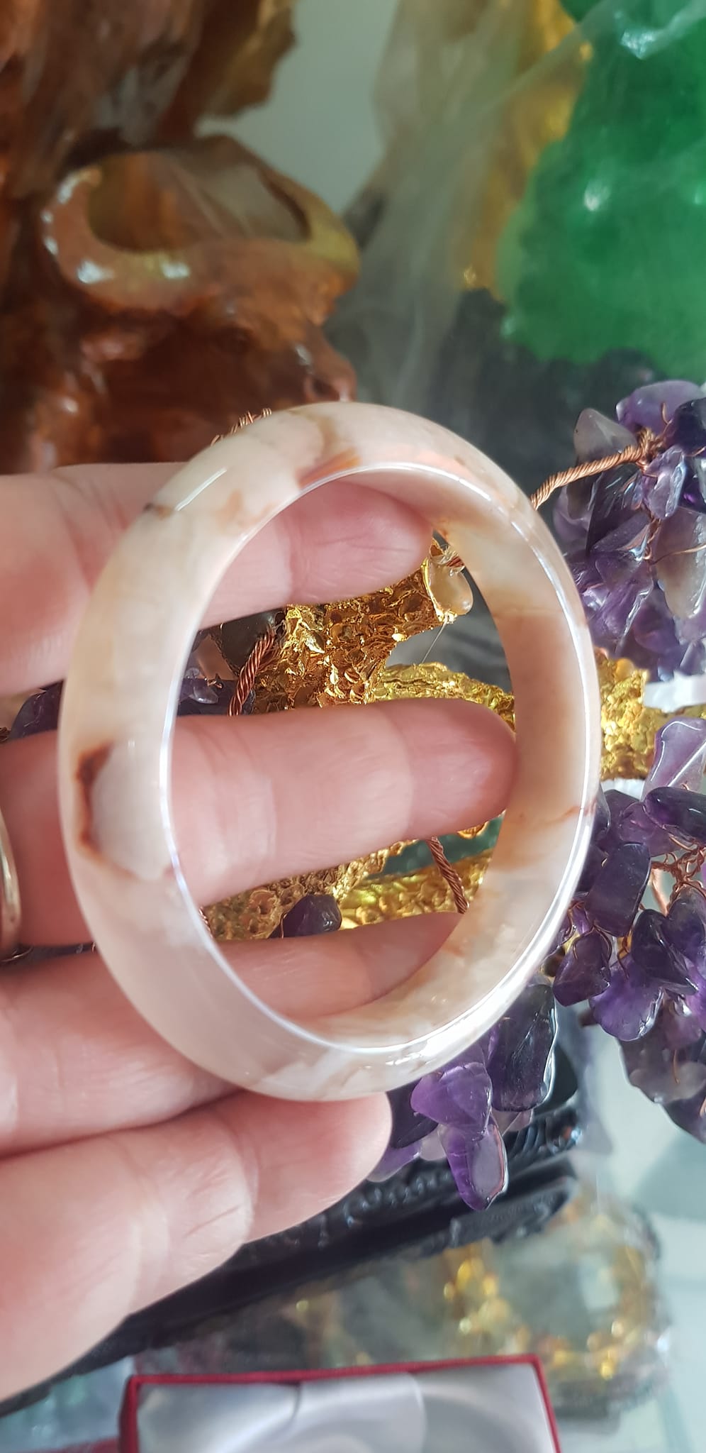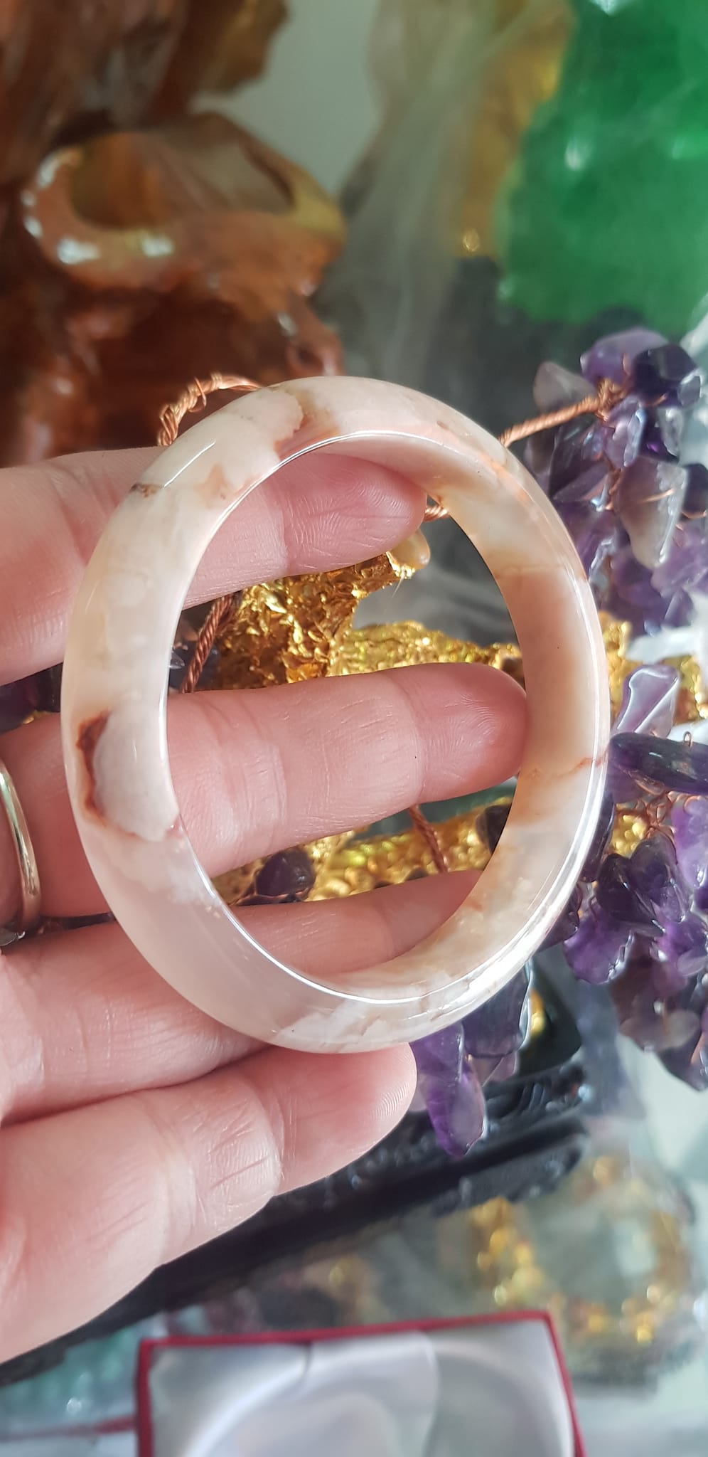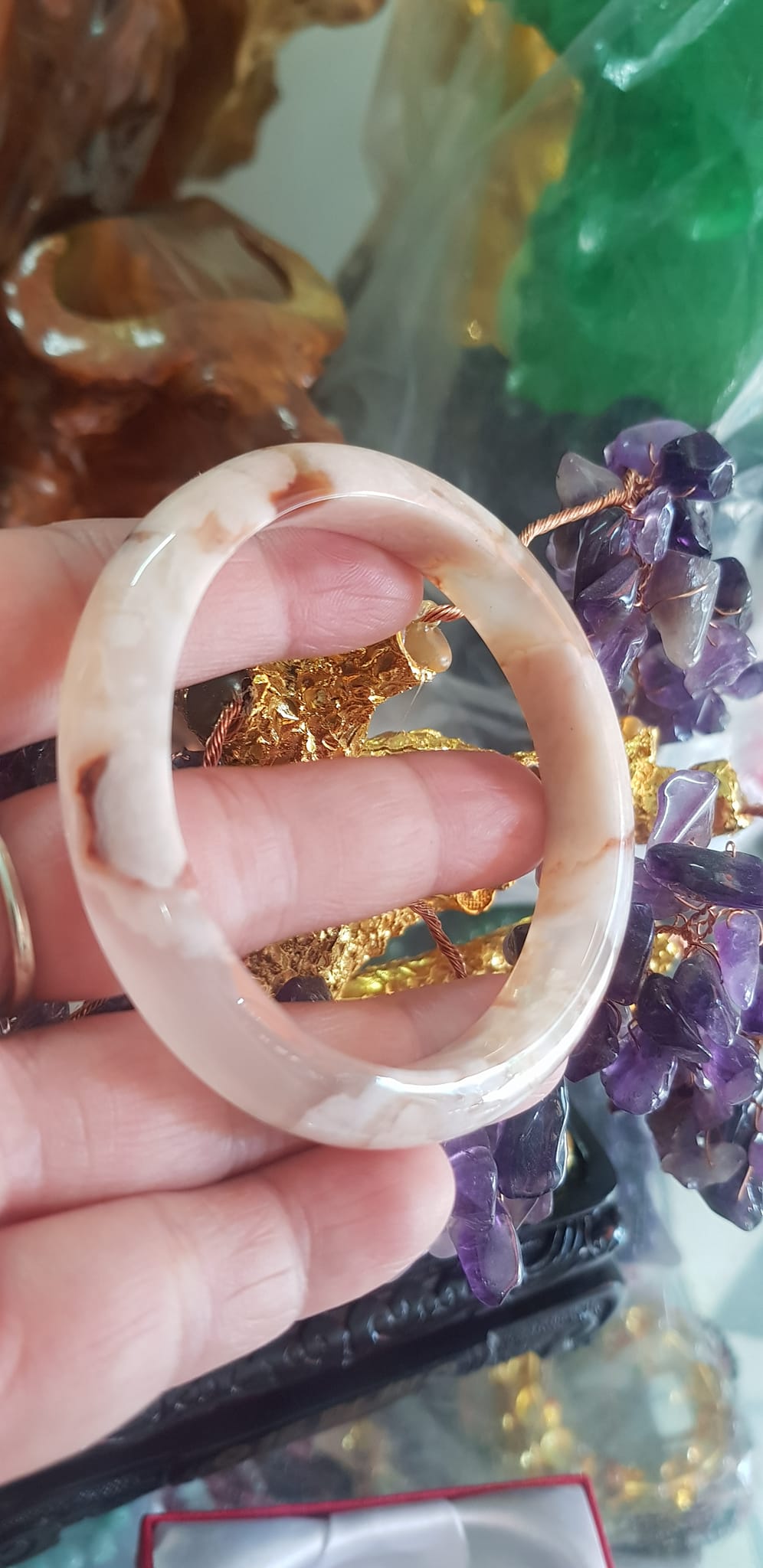 Vòng đeo tay Nữ Bản Hẹ Đá Mã Não Hoa Rau Câu 53mm x Cao 10mm x dầy 7mm bóng đẹp nữ 50kg - 53kg đeo ạ