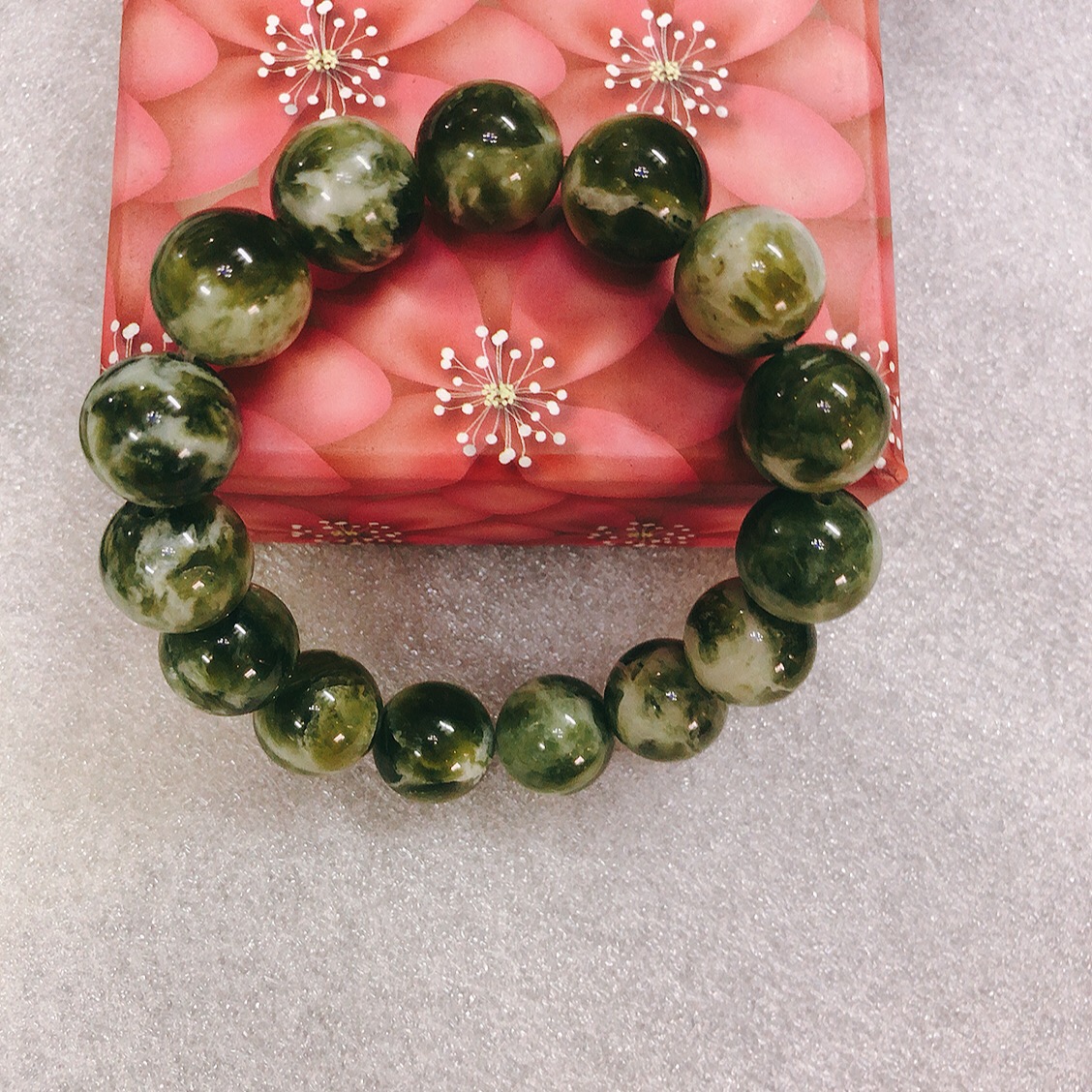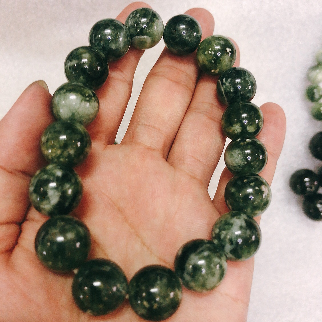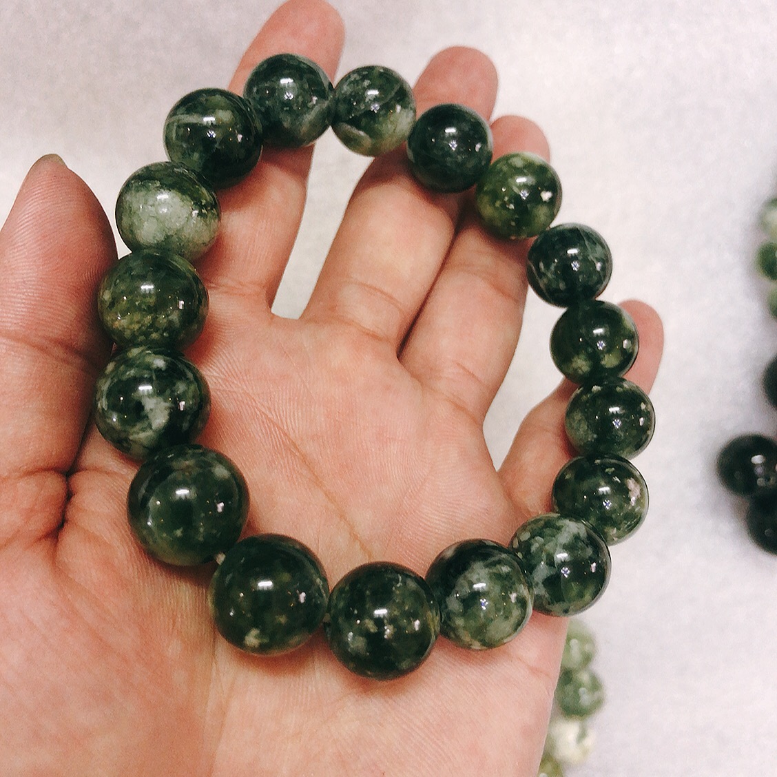 Vòng tay ngọc Serpentine 100% đá tự nhiên không qua xử lý, khai thác và chế tác tại Việt Nam. Màu: xanh đen đậm gần như màu đen, xanh ô liu , xanh pha trắng
