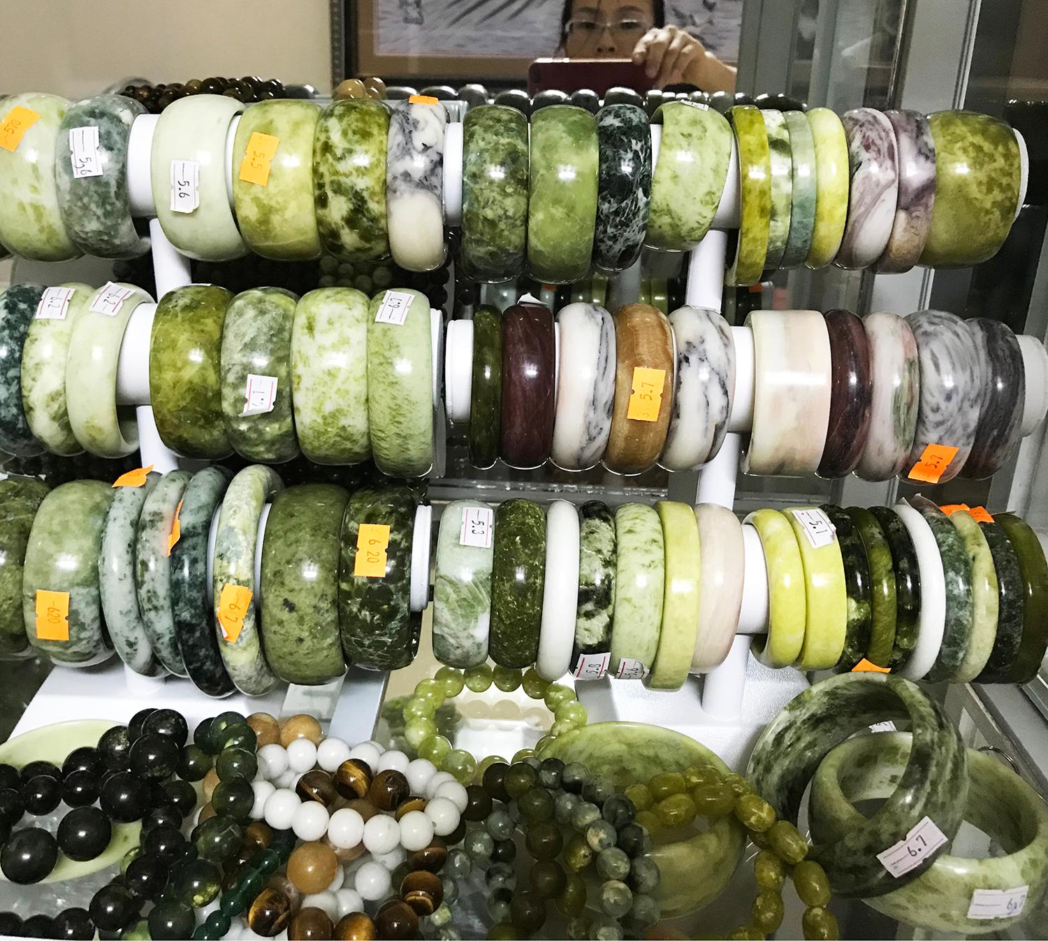 - Tại sao nên đeo ngọc thật hay đá thật? Vì nó mang năng lương dương do sự biến đổi chịu tác động của nhiệt độ rất cao trong lòng đất hàng triệu năm mà hình thành nên đá. Ngọc cũng là đá nhưng nó có độ trong và xuyên thấu ánh sáng, nó đẹp và hiếm hơn đá. Được tìm thấy ở một số nơi ở VN như tỉnh Yên Bái. Những chiếc vòng ngọc này còn gọi là đá cẩm thạch, đá ngọc serpentine được chọn tỉ mỉ từ những tảng đá tự nhiên nguyên khối. Không phải tảng đá nào cũng có chất ngọc trong vắt bên trong (màu trong thấu đèn nằm trong đá gọi là ngọc) Chất này được cưa cắt từ tảng đá và chế tác thủ công thành trang sức. Nên nó có năng lượng dương rất tích cực, Mang đá bên mình để “ nhân hữu thạch tất khang” ( Người có đá tất sẽ khỏe mạnh). Vì vậy nó có lợi cho sức khỏe Giá của nhà chế tác thủ công nên khách được dùng hàng thật với gốc của gia đình sản xuất